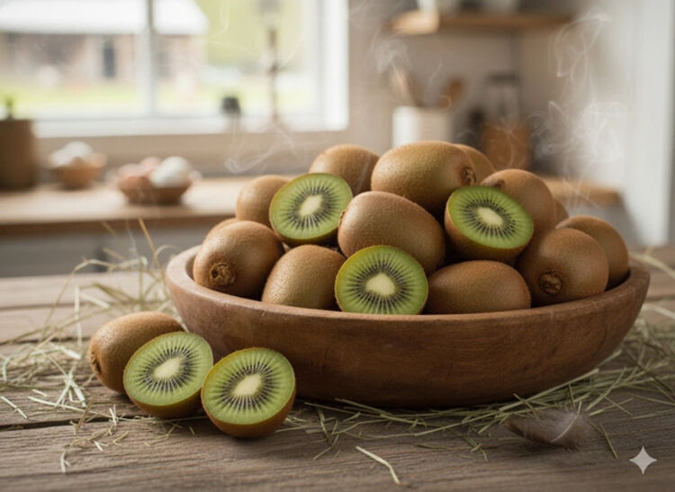 Ăn 2 quả kiwi 1 giờ trước khi ngủ, giúp ngủ ngon hơn. Ảnh: AI