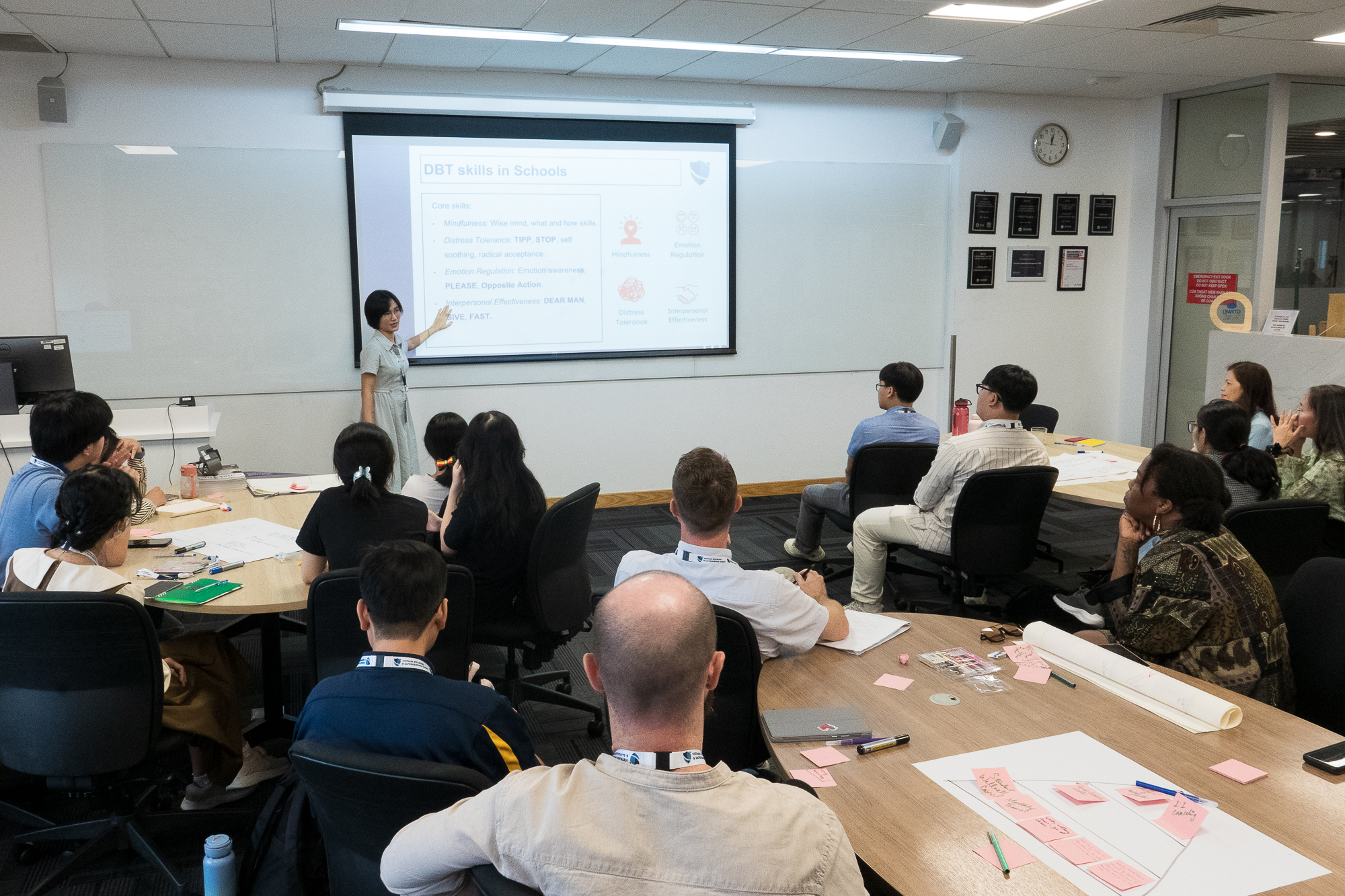 Một chương trình thầy cô có thể áp dụng là liệu pháp hành vi biện chứng (DBT) mà cụ thể ở đây là DBT trong trường học (DBT STEPS-A) để phục vụ các hoạt động giáo dục cảm xúc-xã hội cho học sinh, theo bà Tô Thị Hoan, từ Delta Global School (Hà Nội). Đây là chương trình hỗ trợ giảm trầm cảm, lo âu... qua việc dạy 4 nhóm kỹ năng: chánh niệm, chịu đựng căng thẳng, điều chỉnh cảm xúc và hiệu quả giao tiếp.