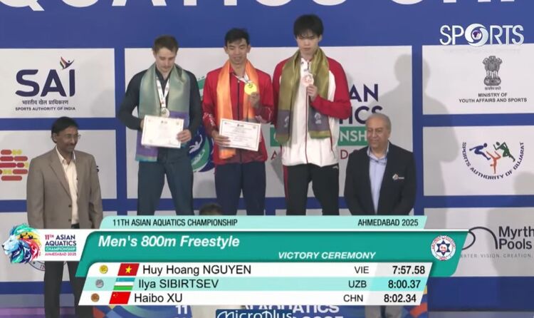 Trong các ngày 29/9 và 1/10, tại Giải vô địch bơi lội châu Á 2025 diễn ra ở Ấn Độ, kình ngư số 1 Việt Nam Nguyễn Huy Hoàng đã lập nên kỳ tích khi giành hai tấm Huy chương Vàng (HCV) ở các nội dung 1.500m và 800m tự do nam.