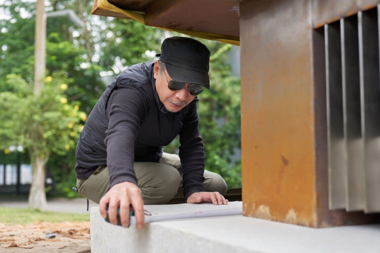 Mỗi nghệ sỹ đều tìm kiếm chất liệu phù hợp nhất với cảm xúc và thể chất của mình. Có người hợp với đá, có người hợp với gỗ, đất sét, xi măng… Với Đào Châu Hải, sau nhiều năm làm nghề, trải qua nhiều lựa chọn, anh nhận ra mình phù hợp nhất với kim loại. “Thép cho tôi cảm giác mạnh mẽ, bền vững và có sức nặng - cả theo nghĩa đen lẫn nghĩa bóng. Chất liệu này quyến rũ tôi và giúp tôi biểu đạt trọn vẹn suy nghĩ của mình,” anh chia sẻ.