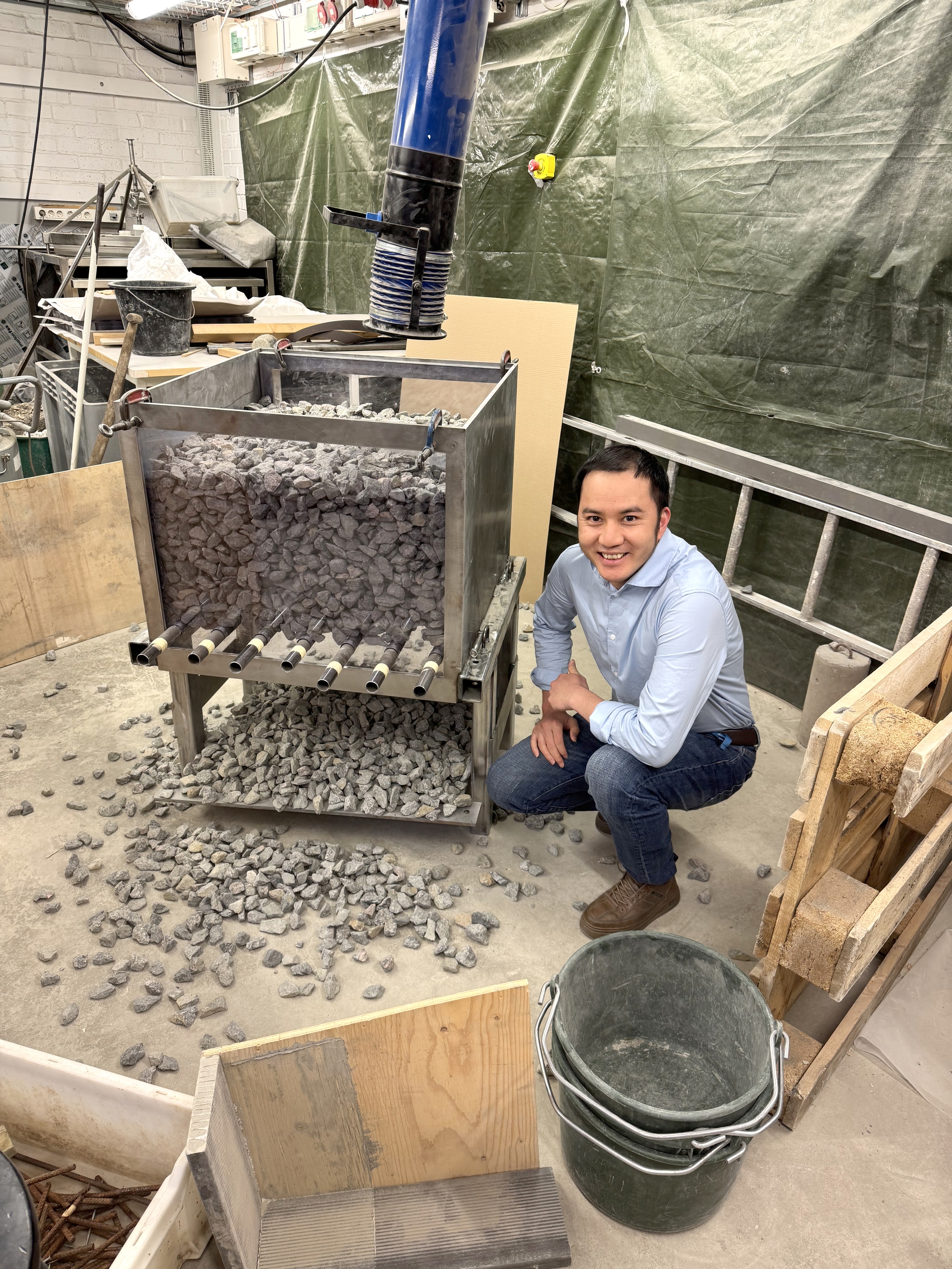Và rồi anh tìm thấy điều đó ở nền móng năng lượng. Bởi nền móng là phần âm thầm nhất của công trình, nhưng lại quyết định sự an toàn của tất cả. Anh nói: "Tôi muốn phần "dưới đất" ấy không chỉ chịu lực, mà còn có thể tạo ra năng lượng sạch, giúp công trình mát hơn, ấm hơn, và vững vàng hơn trước thiên tai".