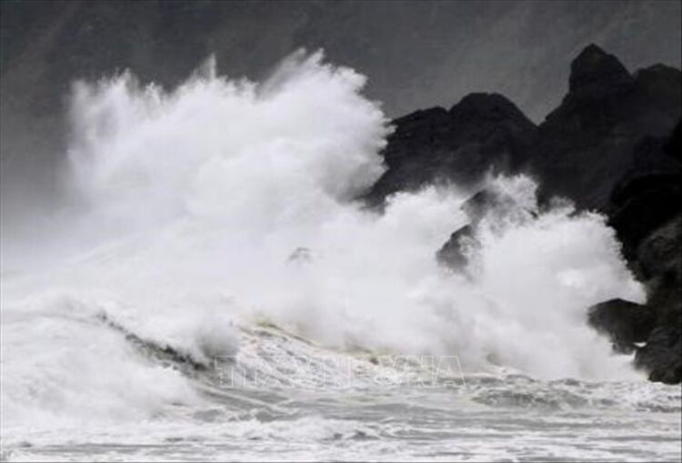 Sóng lớn ở bờ biển quần đảo Amami thuộc tỉnh Kagoshima, Tây Nam Nhật Bản do ảnh hưởng của bão. Ảnh tư liệu: Kyodo/TTXVN