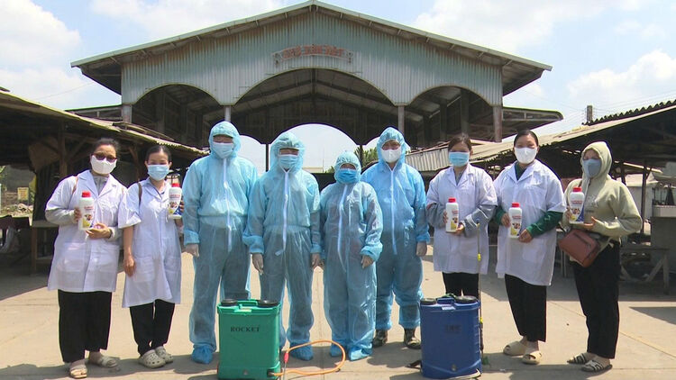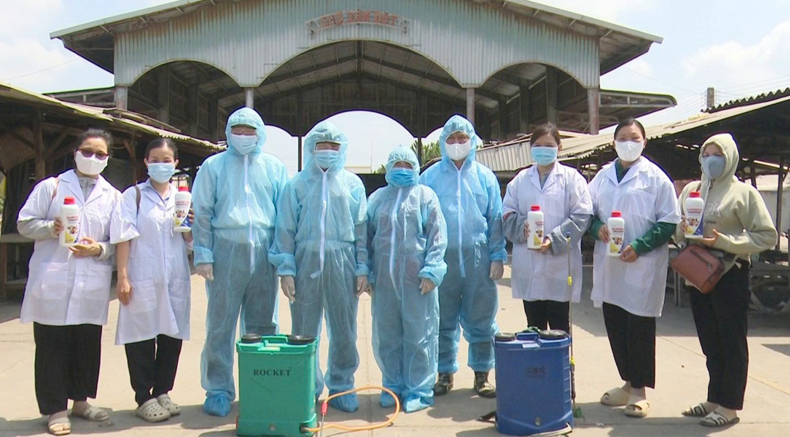Theo đó, đã tiến hành phun hóa chất sát khuẩn chuyên dụng trên toàn bộ khuôn viên, các sạp hàng và khu vực tập kết rác tại 9 điểm chợ. Việc phun xịt được thực hiện vào thời điểm vắng khách, đảm bảo không ảnh hưởng hoạt động mua bán của tiểu thương.