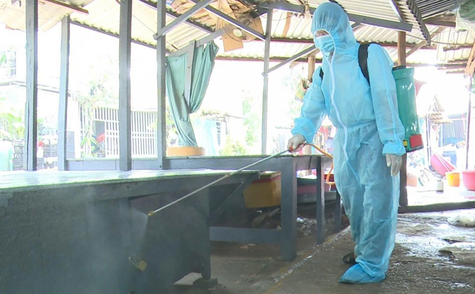 Phun hóa chất sát khuẩn chuyên dụng trên toàn bộ khuôn viên, các sạp hàng và khu vực tập kết rác.