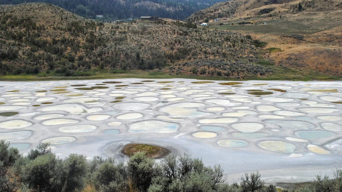 Hồ Spotted, Canada: Nằm giữa lòng British Columbia, hồ Spotted trông giống như một hồ nước ngọt thông thường vào mùa đông. Nhưng khi nhiệt độ tăng lên và nước bốc hơi, nó trở nên hoàn toàn khác biệt.Những đốm xanh lam, vàng và xanh lục khổng lồ xuất hiện, kết quả của sự lắng đọng magie sunfat, natri sunfat và canxi