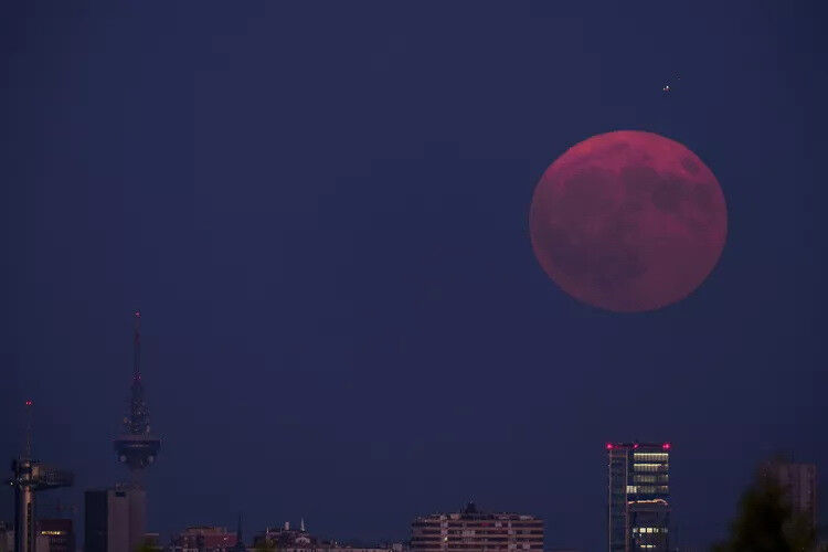 Trong khoảng gần 1 giờ, Mặt Trăng đi sâu vào vùng bóng tối của Trái Đất, chuyển sang sắc đỏ cam đặc trưng – hiện tượng thường được gọi là Trăng Máu. Màn trình diễn hiếm có này có thể quan sát rõ ở khu vực châu Á – Thái Bình Dương và miền Tây Bắc Mỹ.