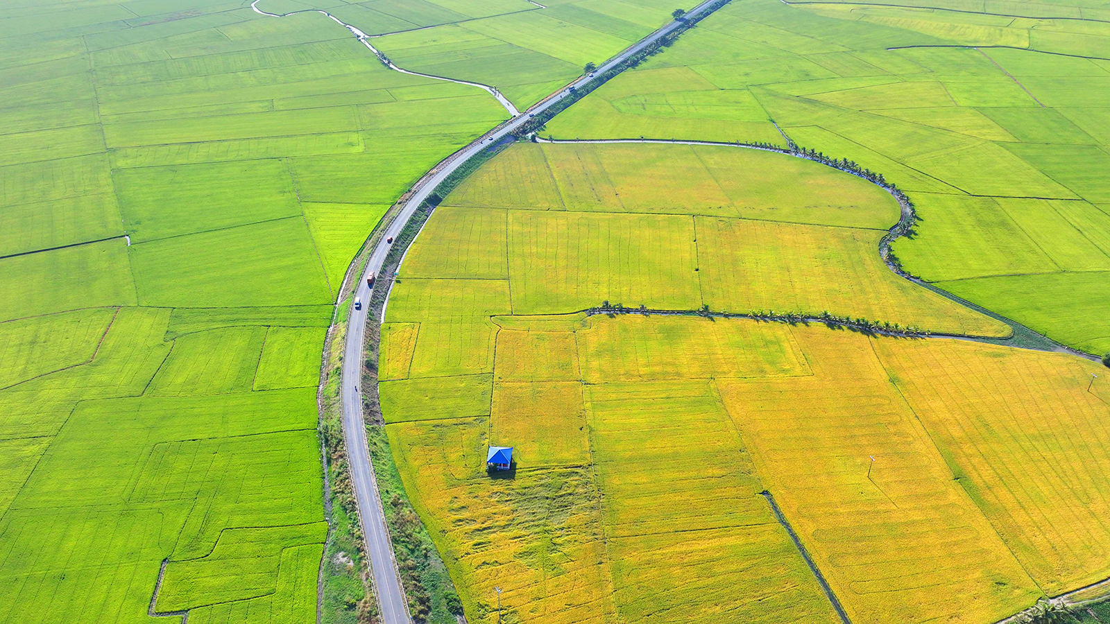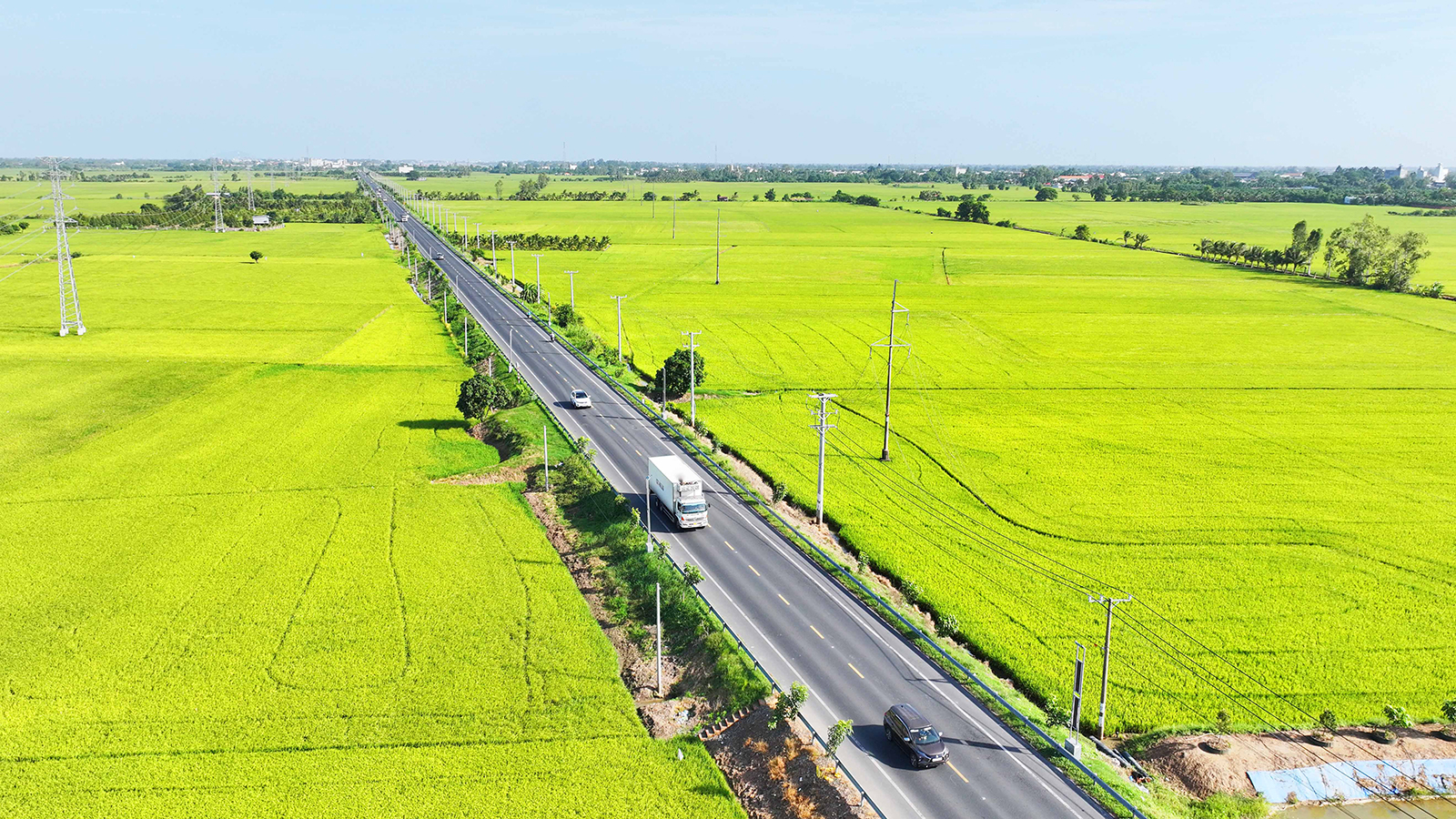 Tuyến đường cao tốc Lộ Tẻ - Rạch Sỏi băng qua cánh đồng thẳng về Rạch Giá.