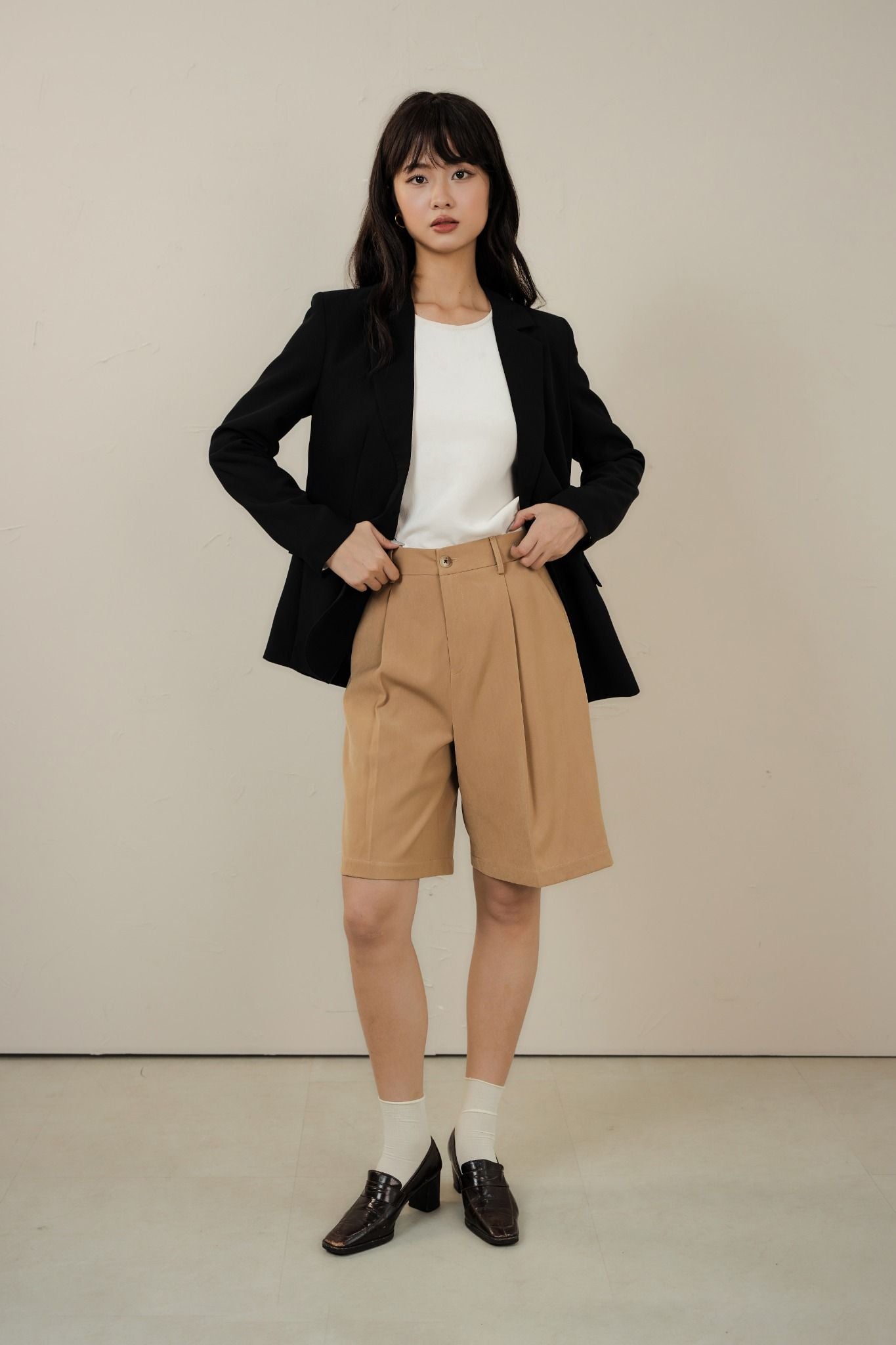 Với những bản phối đời thường mang tính lịch sự, loafer da nâu gót thấp, mũi vuông kết hợp cùng blazer và quần bermuda tạo cảm giác thoải mái nhưng vẫn giữ được nét chững chạc. ẢNH: KHÀN BLAZER