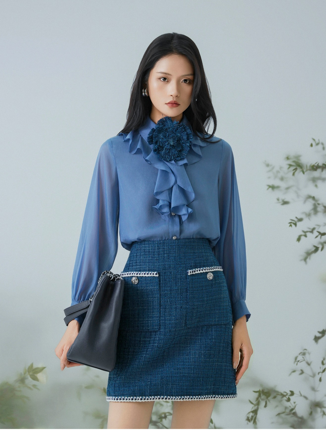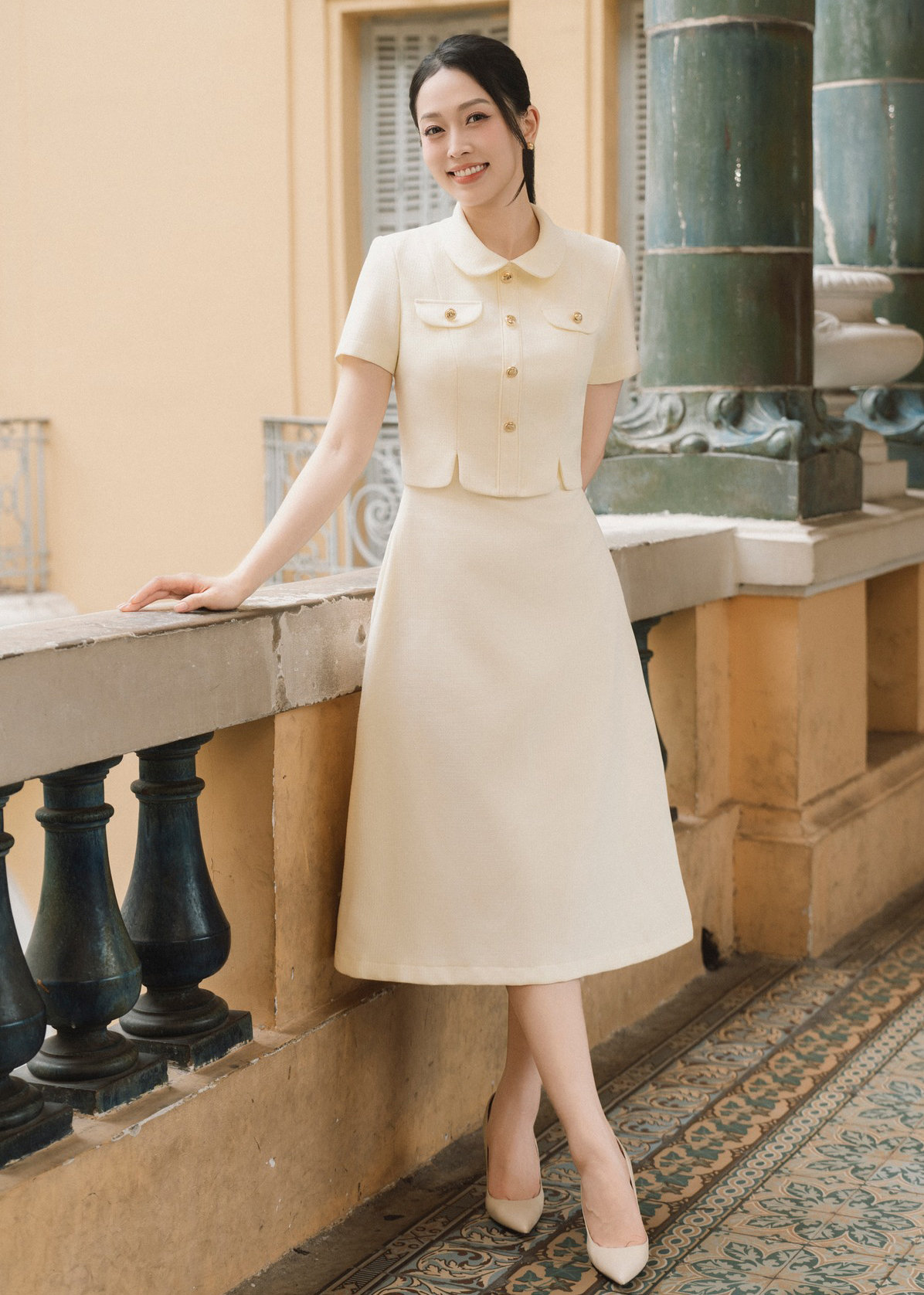 Chân váy tweed là thiết kế mới lạ mang đặc trưng của mùa đông. Thiết kế từ vải tweed được yêu thích đặc biệt trong mùa lạnh vì chính kết cấu thô, độ dày dặn đứng phom đặc trưng. Chân váy tweed có thể diện đồng bộ cùng áo tweed hay áo tweed jacket; hoặc phối cùng áo vải mỏng nhẹ như tơ, lụa, voan lưới... ẢNH: ELISE