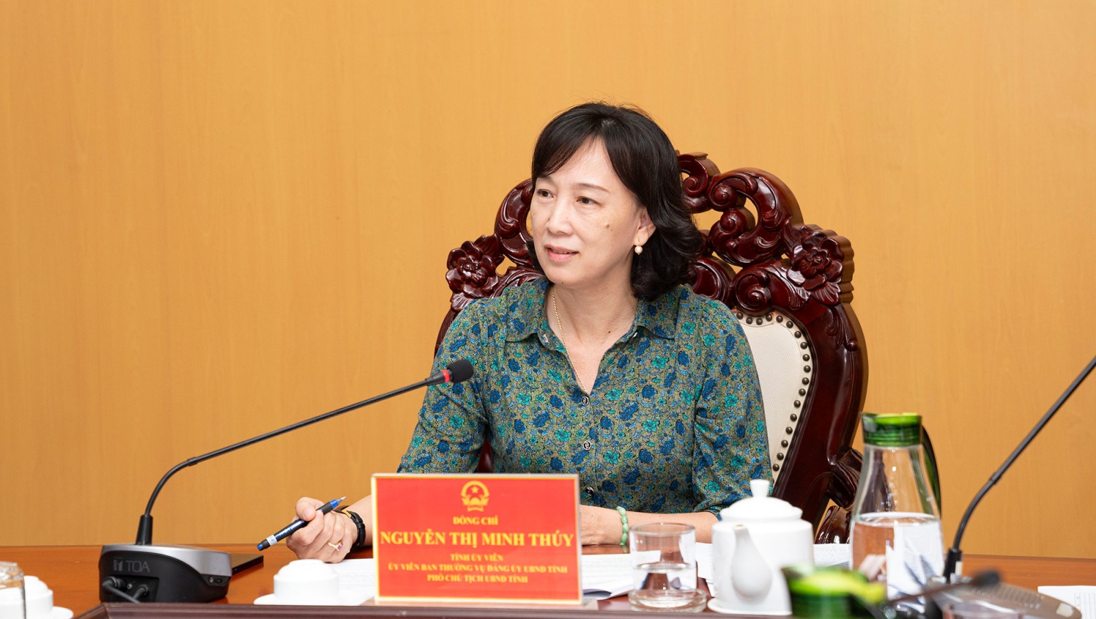 Phó Chủ tịch UBND tỉnh Nguyễn Thị Minh Thúy phát biểu chỉ đạo buổi làm việc.