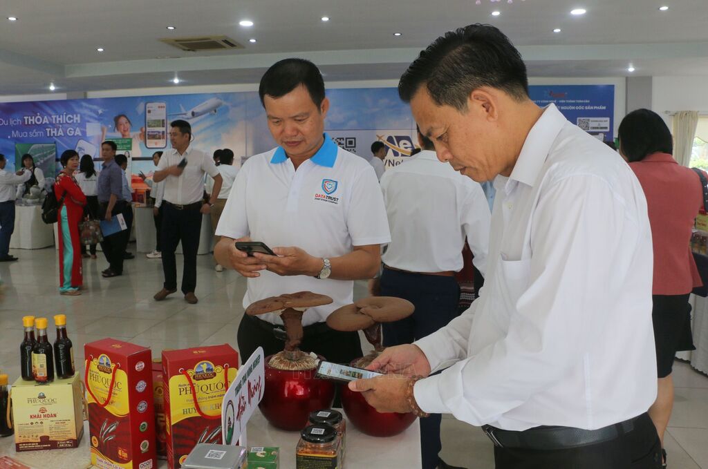 Các mặt hàng nông sản chủ lực, sản phẩm nông nghiệp tiêu biểu của tỉnh An Giang được gắn mã QR và đưa lên bán trên các sàn thương mại điện tử nhằm tăng khả năng tiếp cận nhiều đối tượng khách hàng hơn. Ảnh: Công Mạo-TTXVN