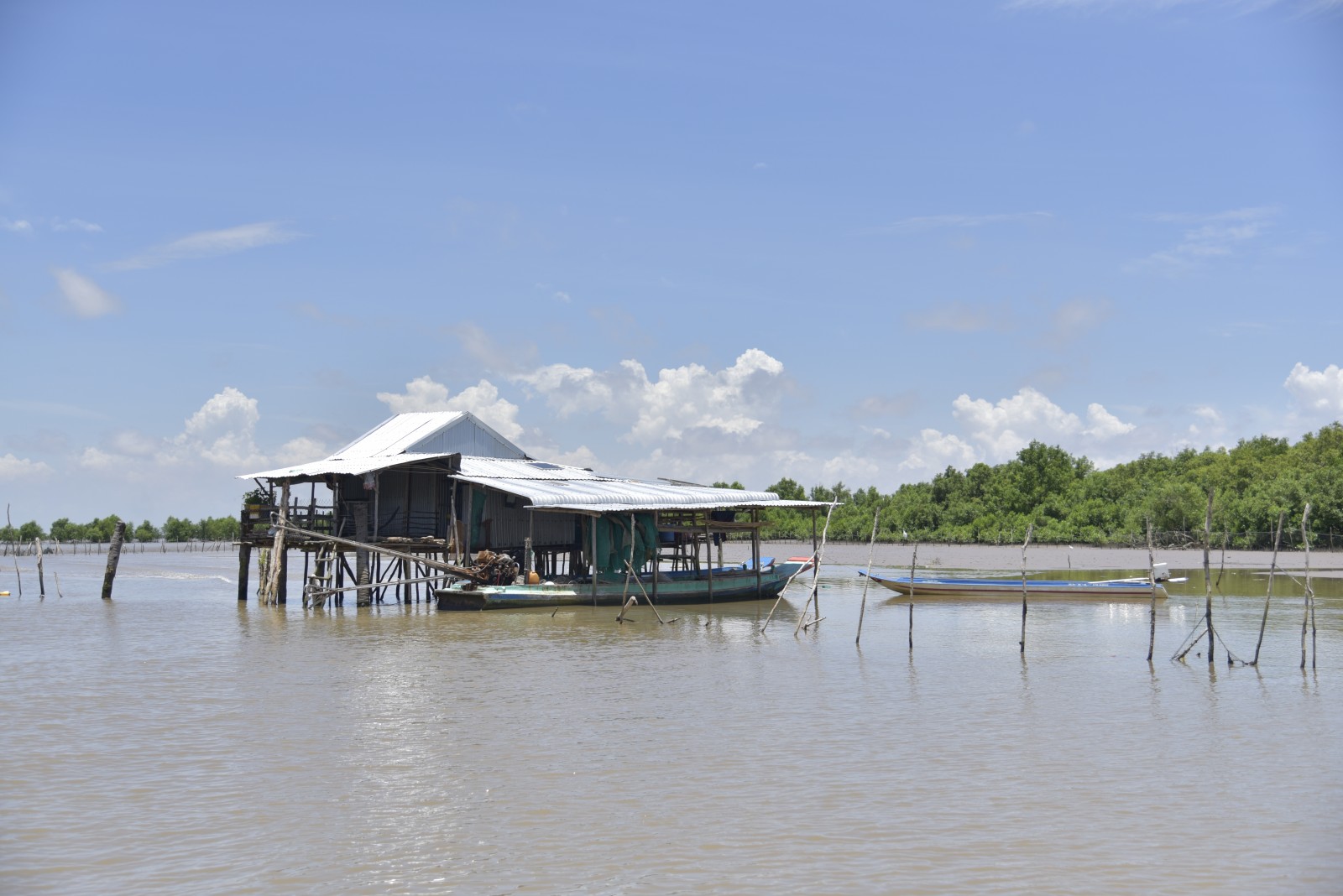 Người dân ấp Sáu Biển nuôi sò trên bãi bồi ven biển, kết hợp trồng và giữ rừng phòng hộ.