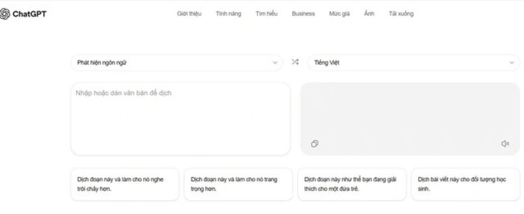 Giao diện làm việc của ChatGPT Translate. ẢNH: CHỤP MÀN HÌNH