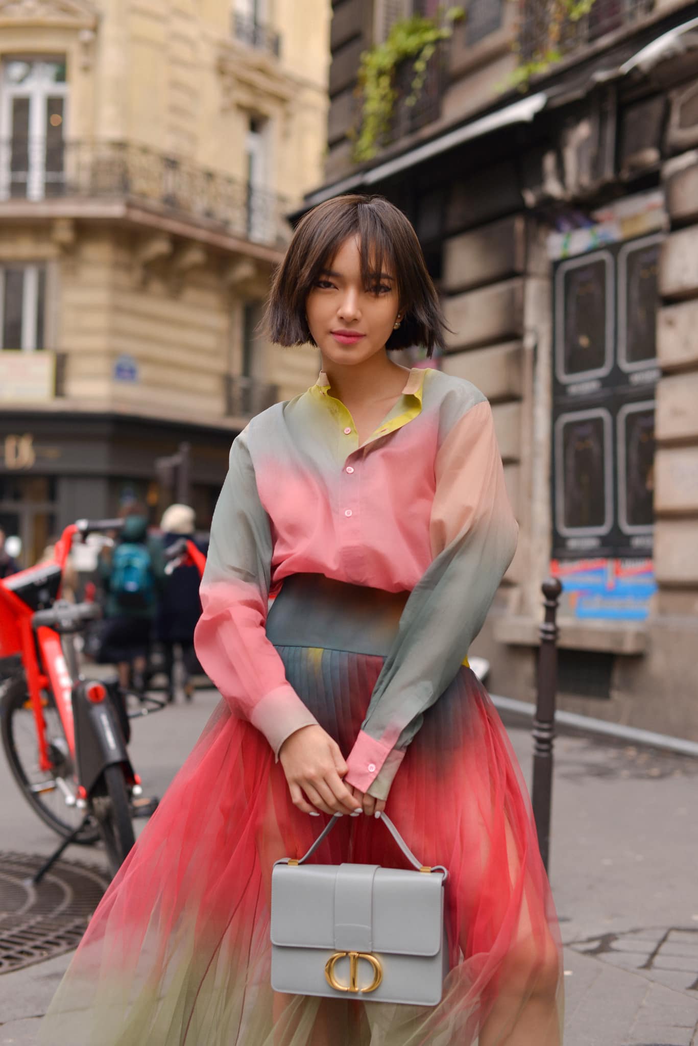 Sự kết hợp đa dạng màu sắc trên nền vải voan nâng tầm vẻ sang trọng, tiết chế phụ kiện để tổng thể không bị rối mắt. ẢNH: @CHAUBUI_