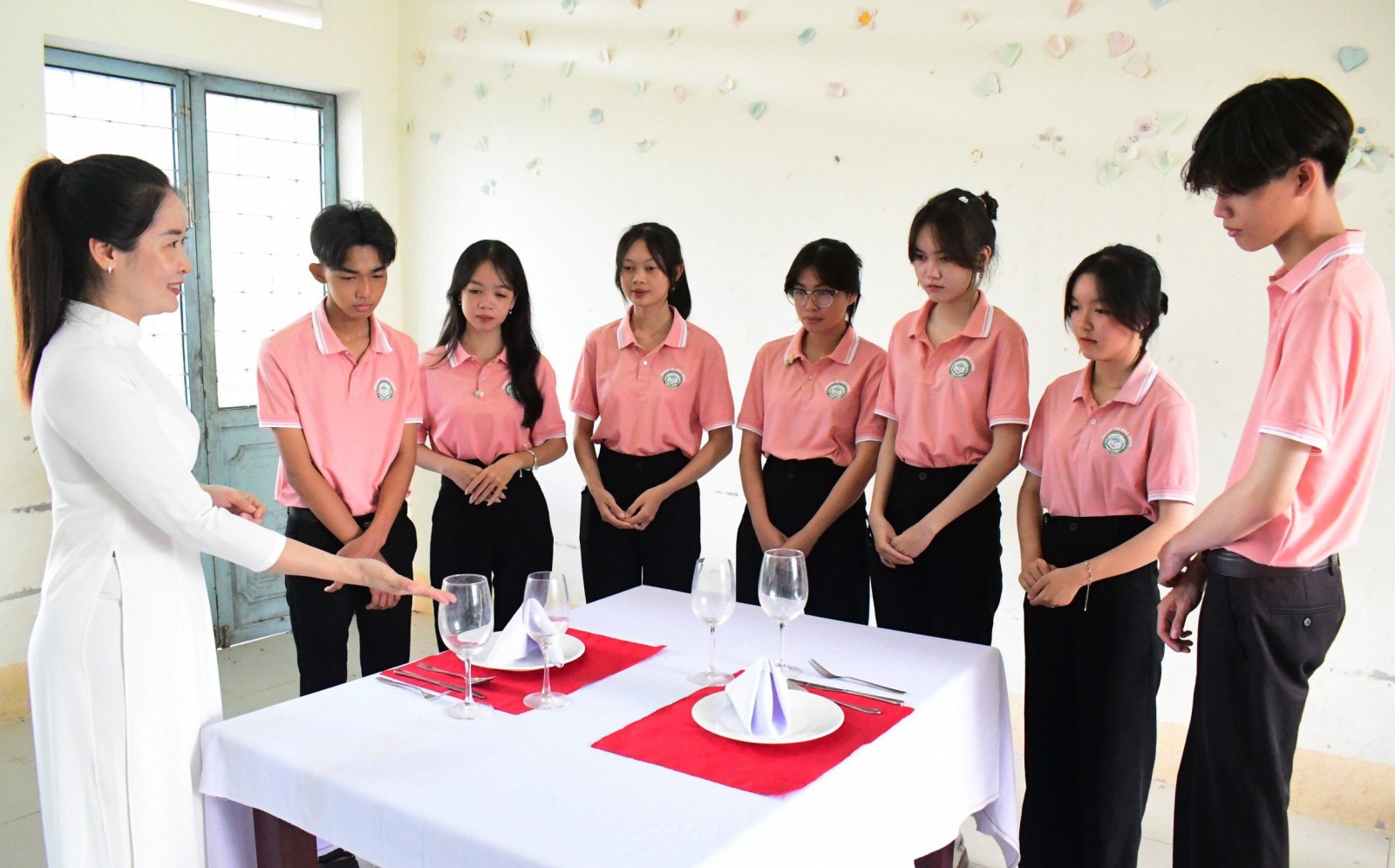 Dạy nghề cho con em đồng bào Khmer tại trường trung cấp dân tộc nội trú. Ảnh: DANH THÀNH