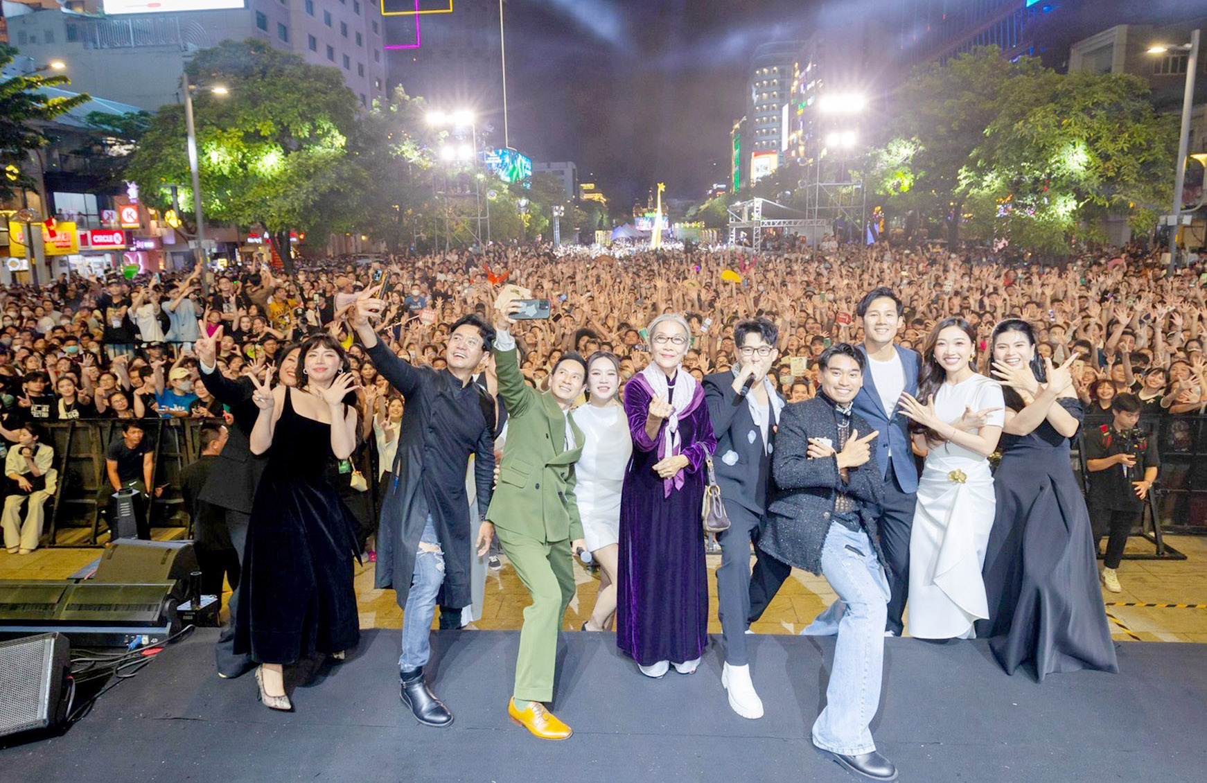 Đoàn làm phim giao lưu với hàng ngàn khán giả tại phố đi bộ Nguyễn Huệ trong khuôn khổ Liên hoan phim quốc tế TP.HCM 2024 - Ảnh: HIFF