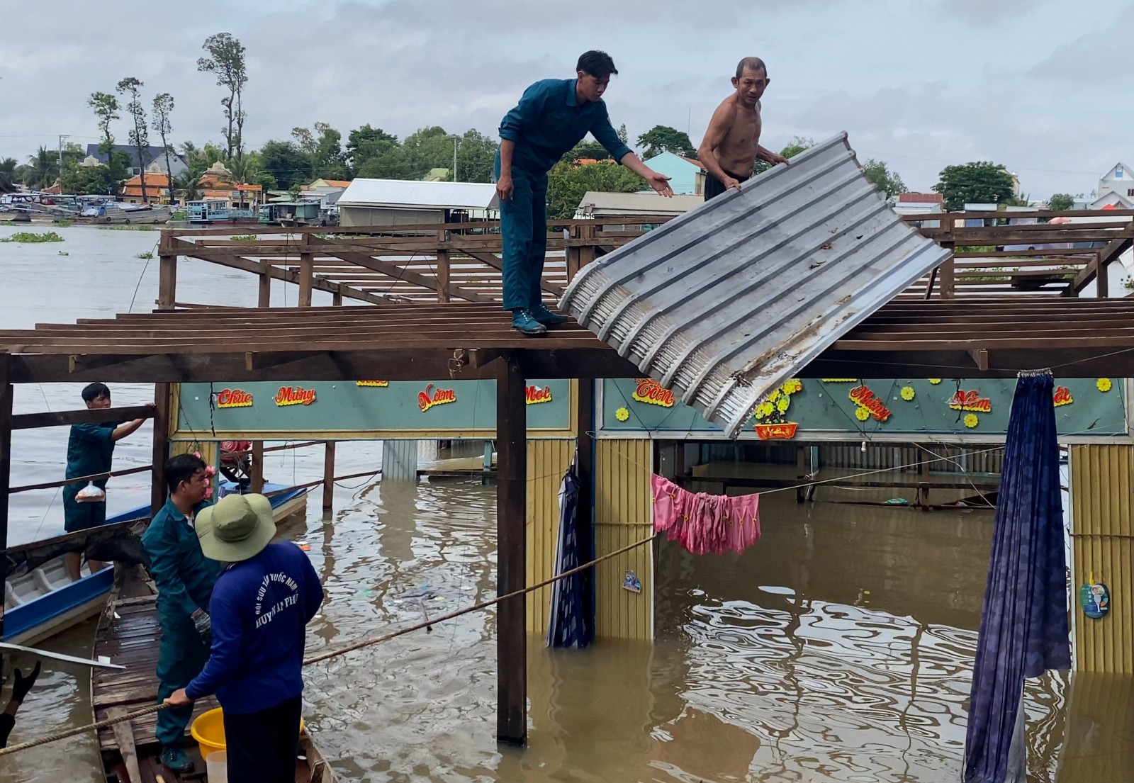 Lực lượng chức năng hỗ trợ người dân khắc phục hậu quả.