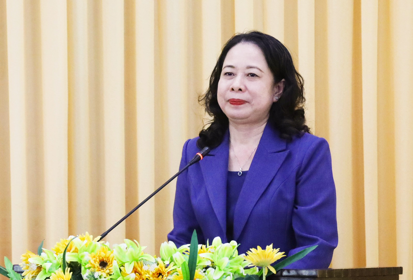 Phó Chủ tịch nước Võ Thị Ánh Xuân phát biểu tại buổi thăm, chúc tết các đơn vị lực lượng vũ trang đứng chân trên địa bàn tỉnh An Giang.