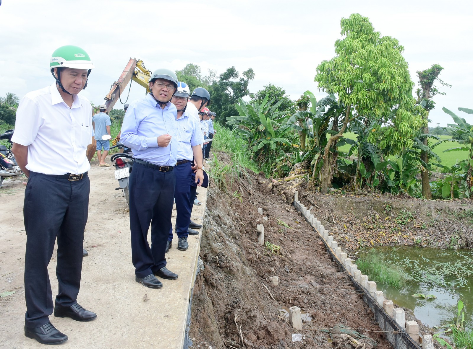Khảo sát công tác gia cố đê bao, bảo vệ sản xuất tại xã Thạnh Mỹ Tây.