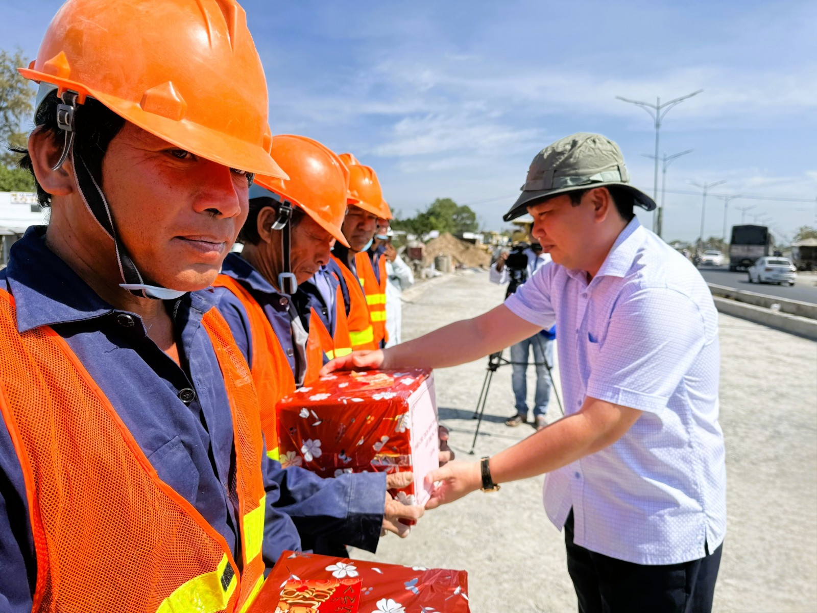 Nhân dịp năm mới 2026, Phó Chủ tịch UBND tỉnh đã trao quà và gửi lời chúc sức khỏe đến toàn thể lực lượng thi công. Đồng thời, mong muốn các đơn vị tiếp tục phát huy tinh thần đoàn kết, nỗ lực vượt khó để sớm hoàn thành các công trình.