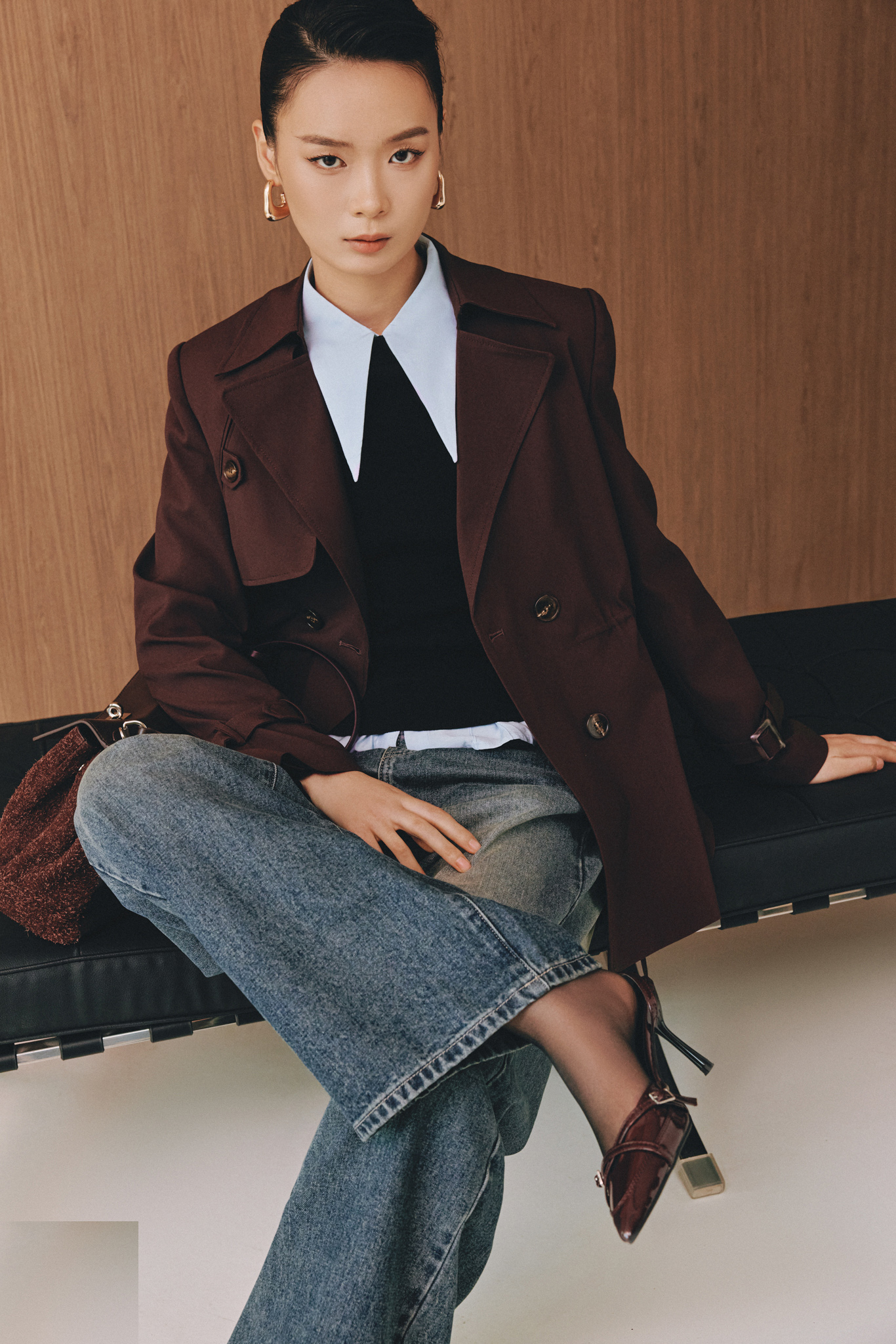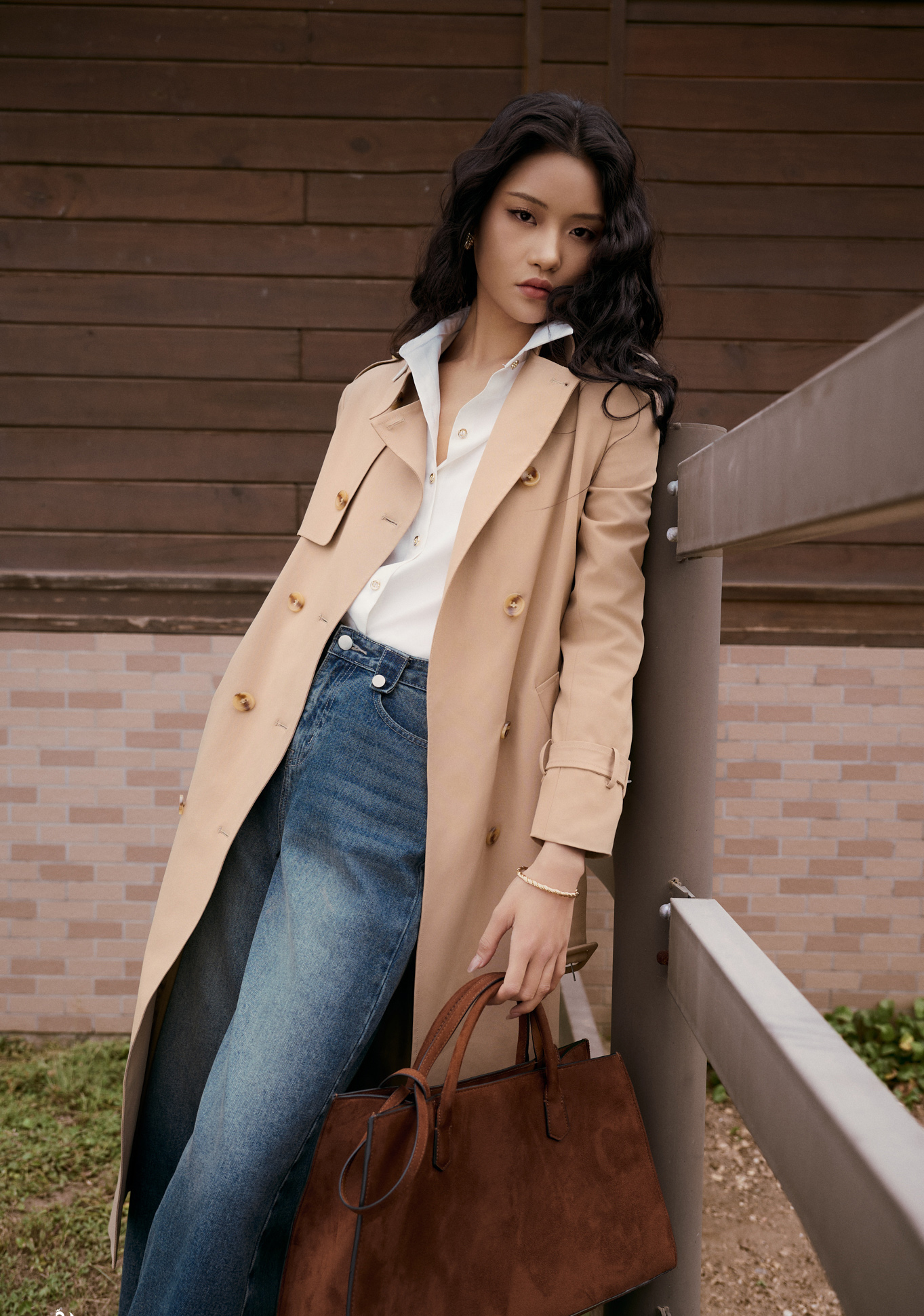 Phong thái cổ điển hòa quyện trong dáng vẻ hiện đại, năng động đầy khí chất của quý cô yêu thích diện áo sơ mi trắng. Bản phối nhiều lớp này sử dụng các món đồ timeless mang đặc trưng mùa lạnh - quần denim xanh, áo măng tô màu beige, túi oversized và bốt da tông màu nâu ấm. ẢNH: LEIKA