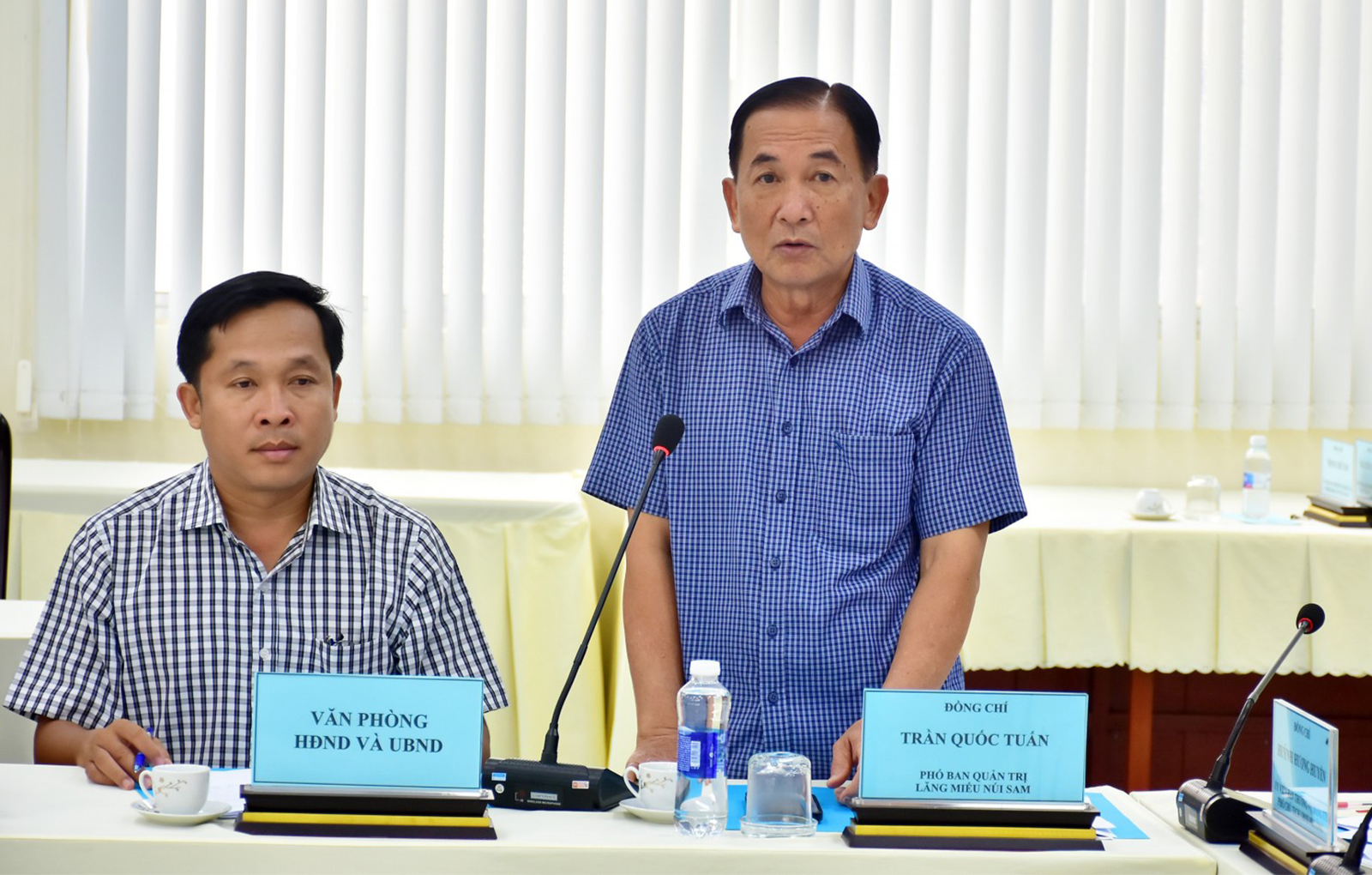 Phó ban Quản trị Lăng miếu Núi Sam Trần Quốc Tuấn nêu ý kiến.