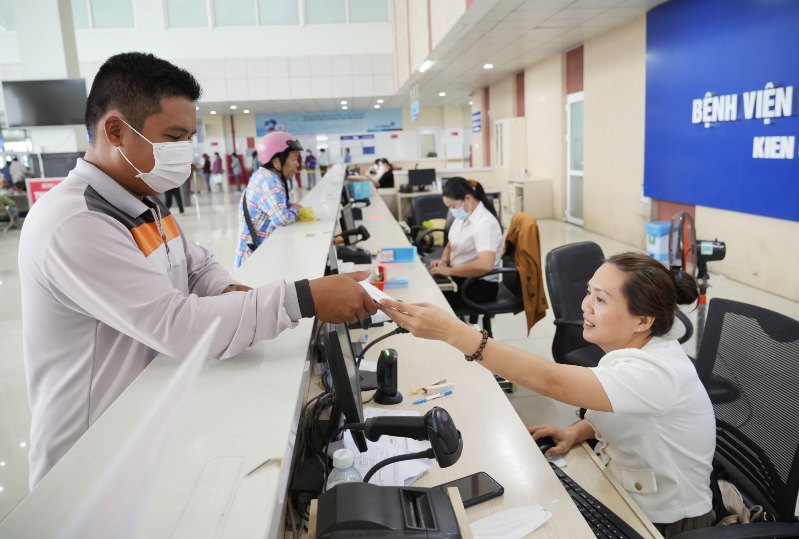 Người dân đăng ký khám bệnh tại Bệnh viện Đa khoa Kiên Giang. Ảnh: TÂY HỒ