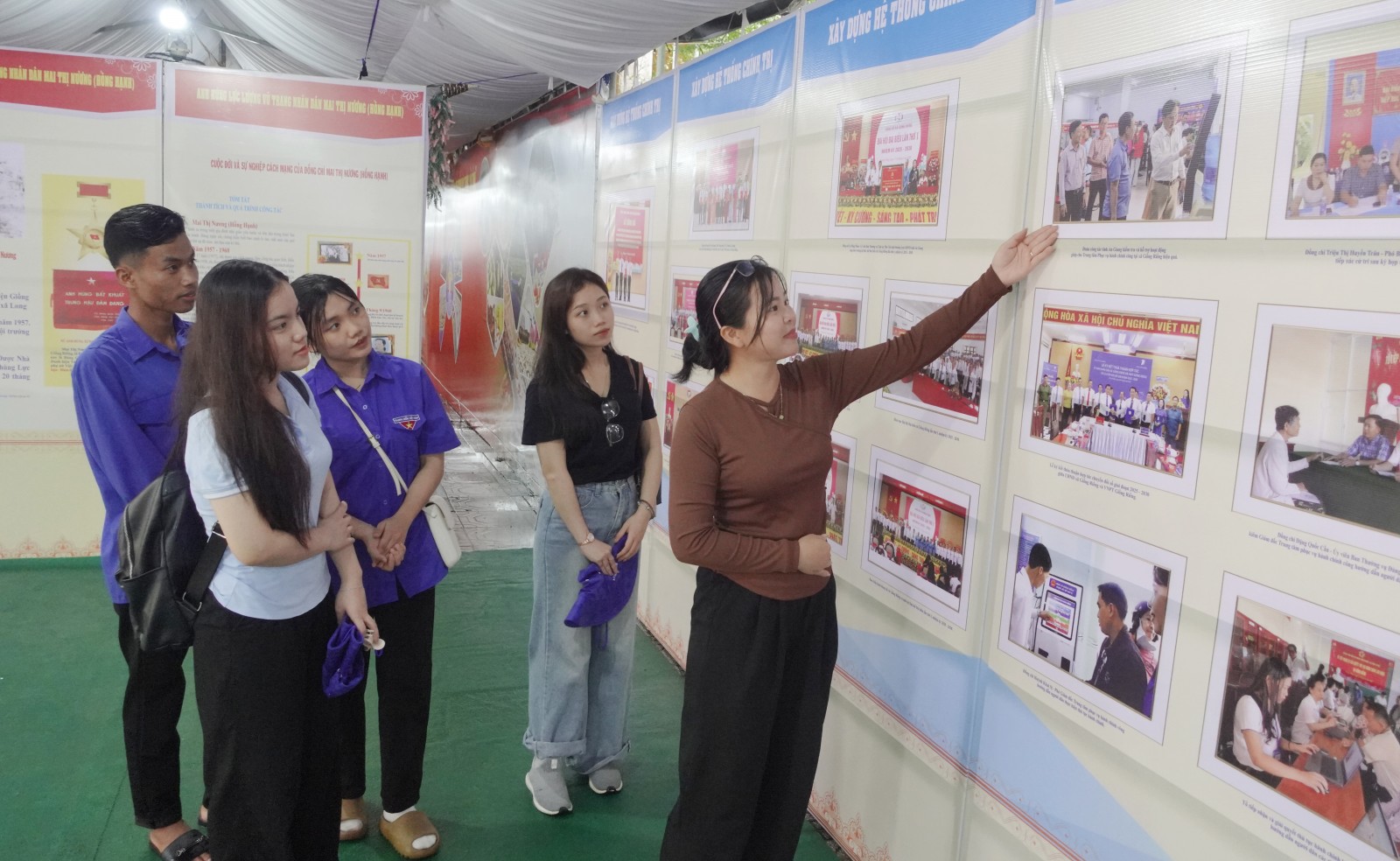 Không gian trưng bày hình ảnh, sản phẩm OCOP, triển lãm sách và tranh vẽ… góp phần tái hiện ký ức lịch sử, đồng thời tôn vinh những thành tựu phát triển hôm nay trên quê hương anh hùng.