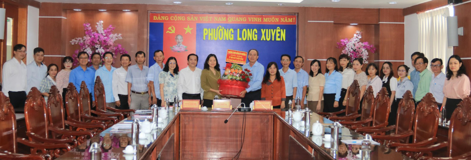 Thường trực Đảng ủy phường Long Xuyên tặng quà chúc mừng các cơ quan tham mưu, giúp việc, Hội Nông dân và Hội Liên hiệp Thanh niên Việt Nam phường.