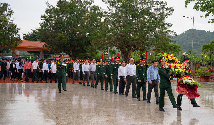 Trước đó, các đại biểu tham dự lễ xuất quân đã đến dâng hương, dâng hoa các Anh hùng liệt sĩ tại Nghĩa trang liệt sĩ Dốc Bà Đắc (phường Thới Sơn, tỉnh An Giang).