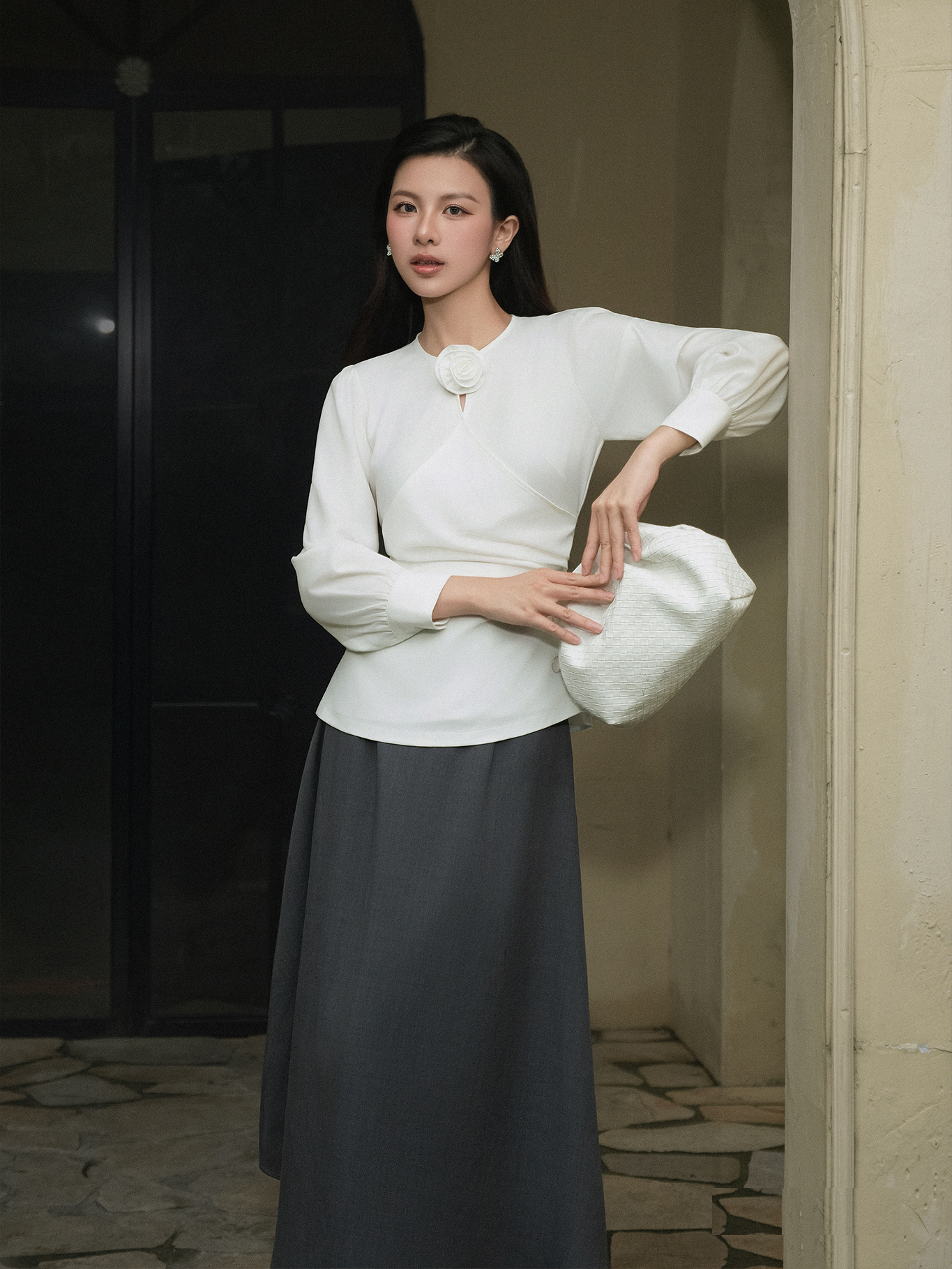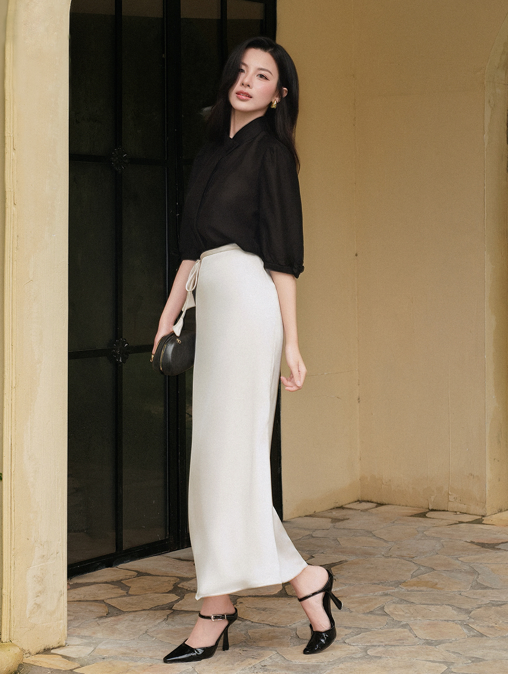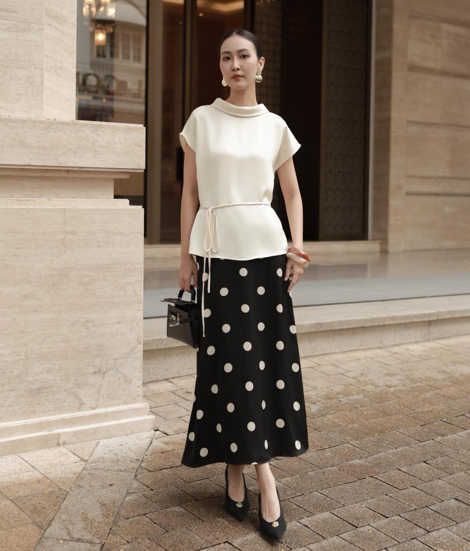 Thỏa sức diện các bản phối cùng chân váy dài và áo kiểu để đi làm, đi chơi. Sự chỉn chu và sang trọng của bản phối làm gia tăng thêm tính linh hoạt khi người mặc có thể diện đến nhiều không gian khác nhau. ẢNH: RUZA