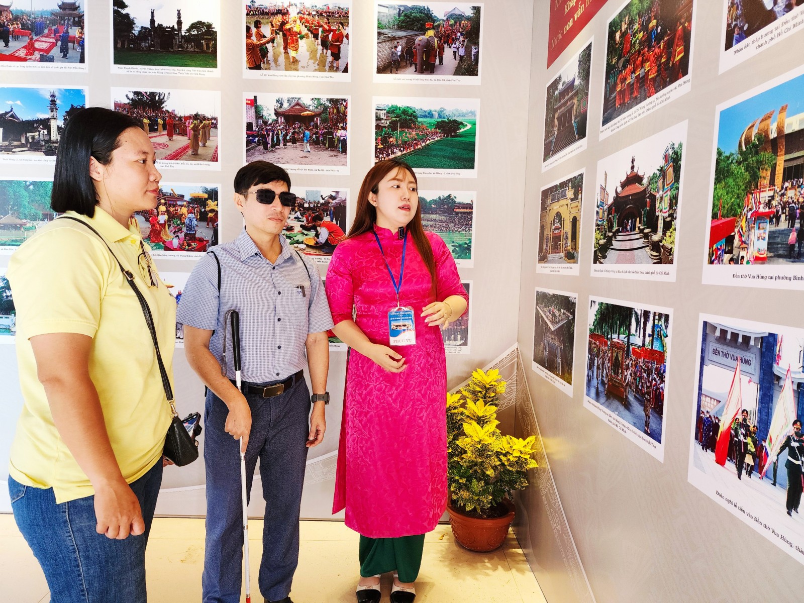 Người dân tham quan khu trưng bày, tìm hiểu về thời đại Hùng Vương và những thành tựu phát triển kinh tế - xã hội của địa phương.