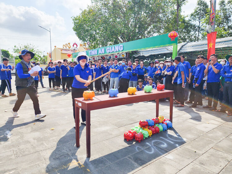 Các trò chơi dân gian như đập heo đất, nhảy bao bố, cướp cờ, đẩy gậy… thu hút đông đảo người dân, nhất là thanh niên, tạo không khí vui tươi, sôi động.