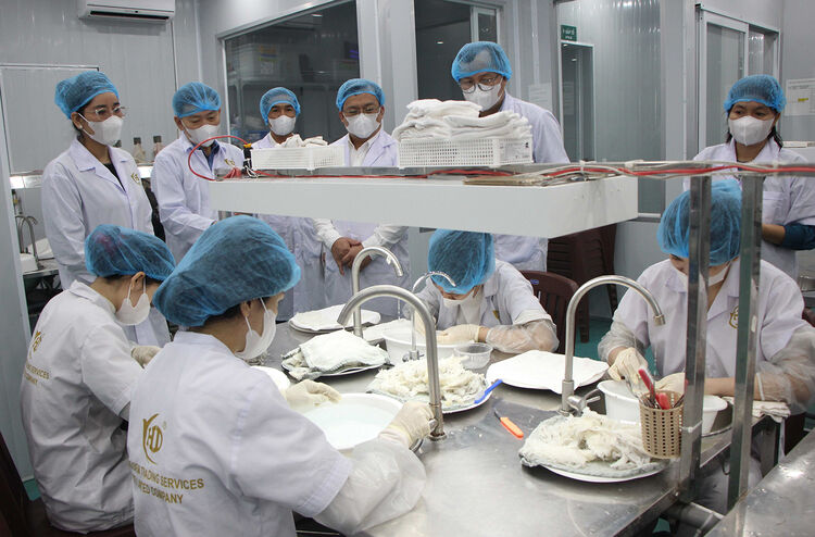 Kiểm tra quy trình sản xuất yến tại Công ty Trách nhiệm hữu hạn một thành viên Thương mại dịch vụ Hùng Diễm. Ảnh: HẠNH CHÂU