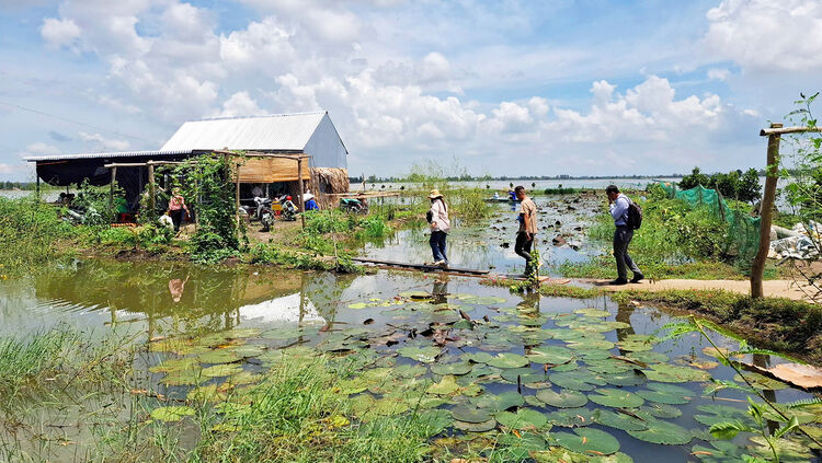| Giai đoạn 2023 - 2025, dự án Mekong NbS đã thí điểm các hệ thống canh tác kết hợp lúa - cá - sen - du lịch sinh thái trên diện tích hơn 235ha. Kết quả, lượng phù sa bồi tụ đạt 3 - 5 tấn/ha, cao gấp nhiều lần so với canh tác lúa vụ 3, mang lại thu nhập từ 50 - 100 triệu đồng cho tổ, nhóm nông dân tham gia… |