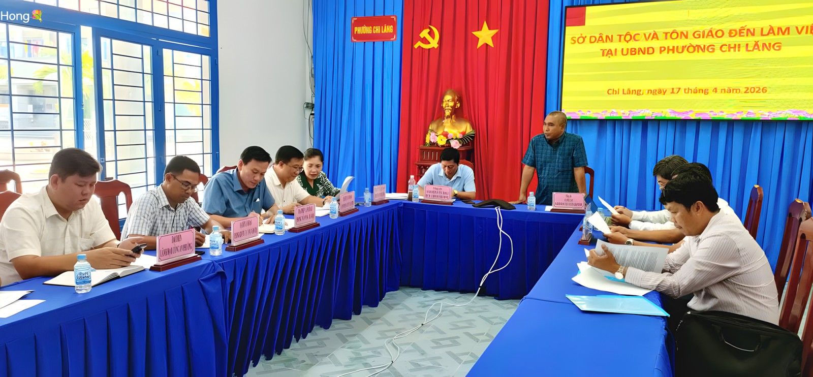 Phát biểu tại buổi làm việc, Phó Giám đốc Sở Dân tộc và Tôn giáo tỉnh An Giang Danh Lắm đề nghị địa phương tiếp tục quan tâm chỉ đạo công tác tôn giáo; tăng cường công tác tuyên truyền, phổ biến pháp luật; làm tốt công tác an sinh xã hội. Kịp thời nắm bắt tình hình, xử lý các vấn đề phát sinh ngay từ cơ sở, góp phần giữ vững an ninh chính trị, trật tự an toàn xã hội trên địa bàn.
