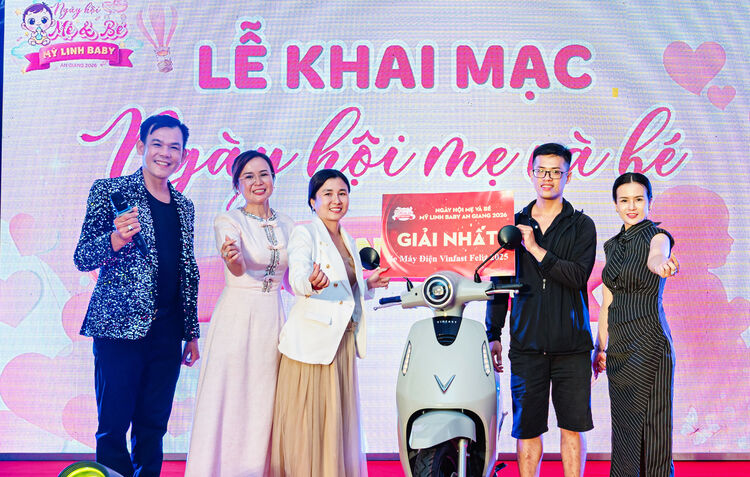 Ban tổ chức trao giải nhất cho khách hàng bốc thăm trúng thưởng trong “Ngày hội Mẹ và Bé Mỹ Linh 2026”