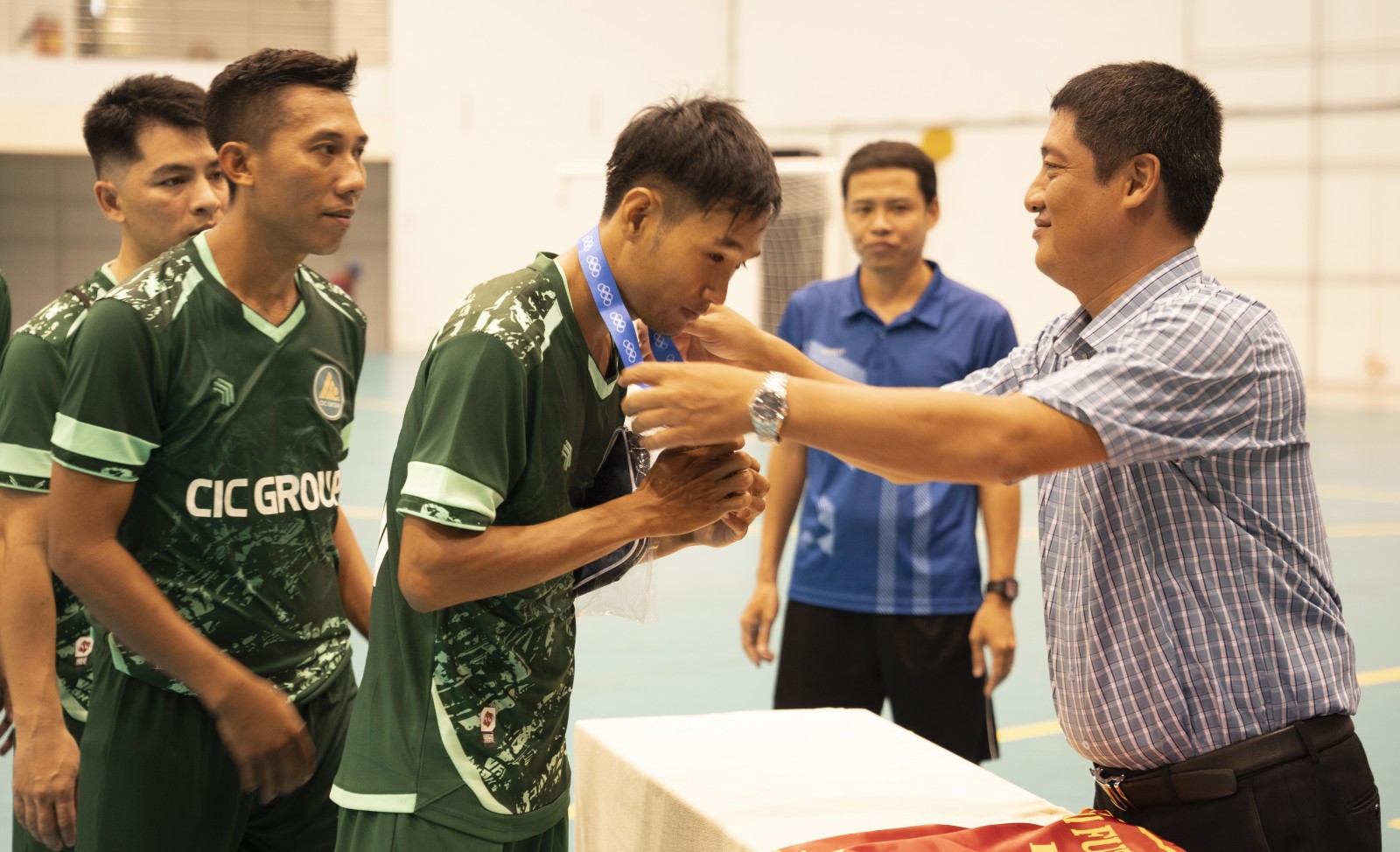 Phó Giám đốc Sở Văn hóa và Thể thao Trần Nguyễn Bá trao huy chương vàng và chức vô địch cho đội CIC Group. Ảnh: TRUNG HIẾU