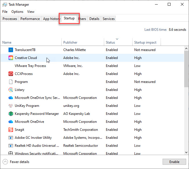 Kiểm tra danh sách ứng dụng khởi động cùng Windows. ẢNH: CHỤP MÀN HÌNH
