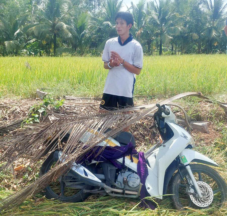 Khi đến đoạn đường trên, phát hiện xe máy của chị T. dựng bên lề đường không có người trông coi, Phước dùng đoản phá khóa lấy trộm xe rồi giấu tại bờ ruộng vắng người qua lại thuộc ấp Vĩnh Thành, xã Bình An, chờ thời cơ đem đi tiêu thụ.