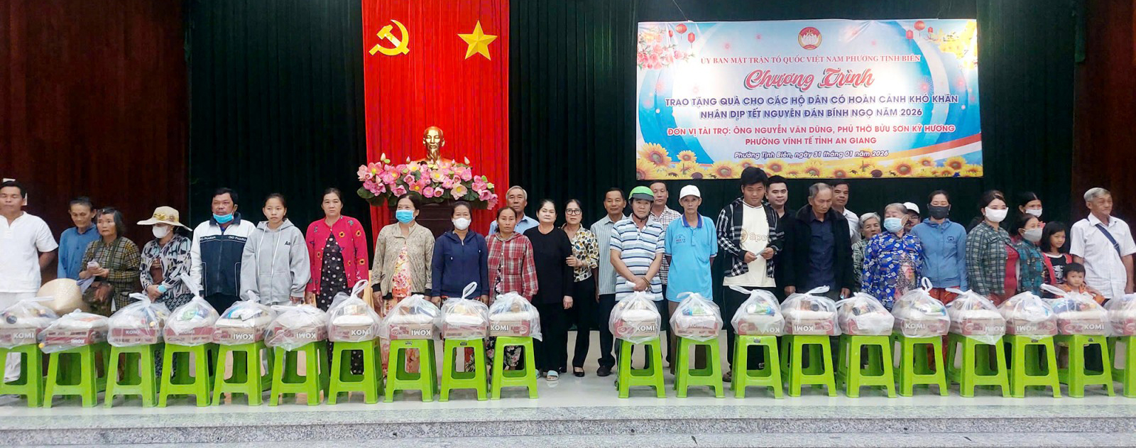 Cùng ngày, đoàn từ thiện đến từ phường Vĩnh Tế (tỉnh An Giang) phối hợp Ủy ban MTTQ Việt Nam phường Tịnh Biên tổ chức tặng 200 phần quà tết cho hộ nghèo, người cao tuổi, gia đình hoàn cảnh khó khăn.