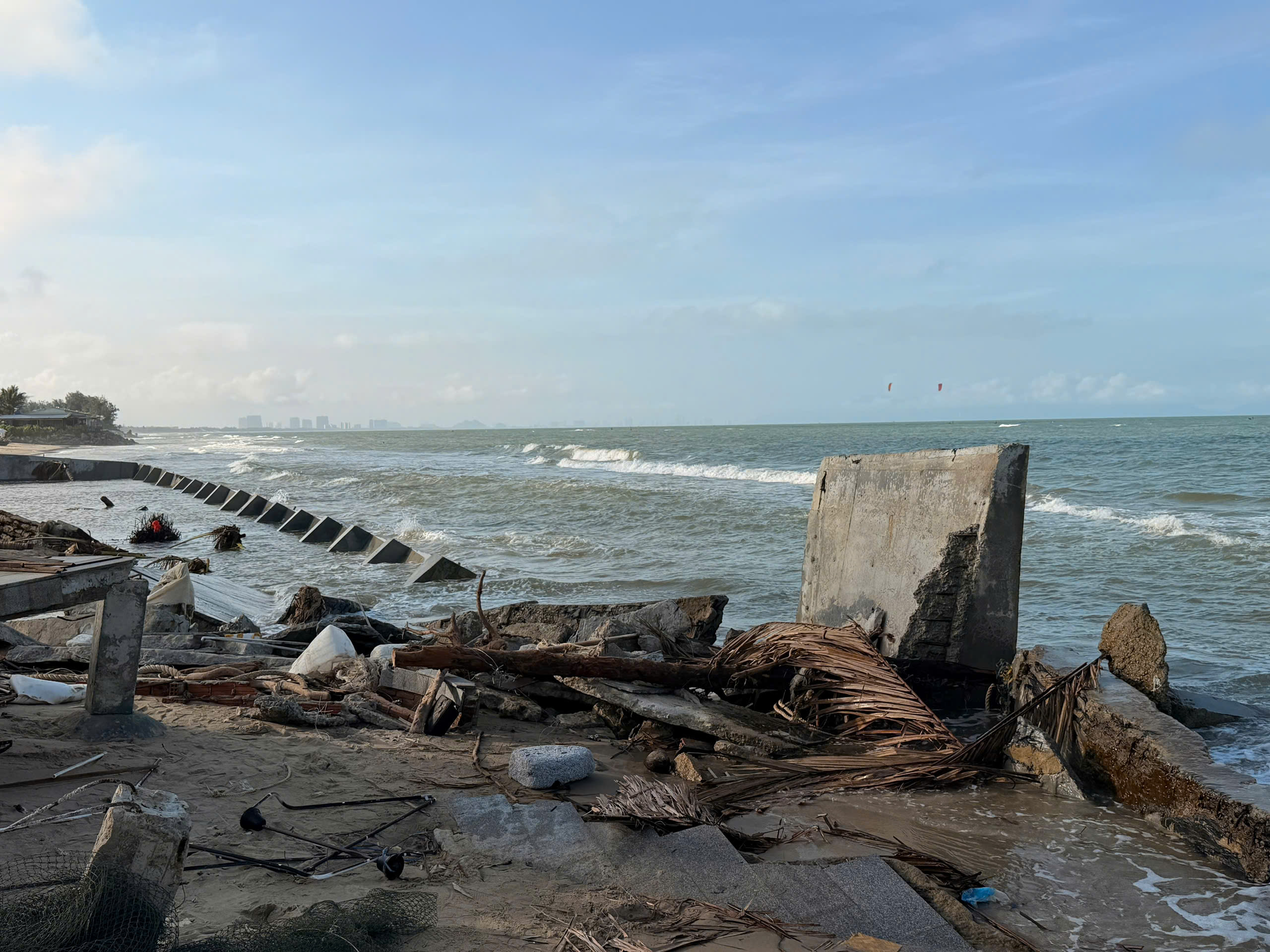 Ghi nhận của Tuổi Trẻ Online lúc 15h30 chiều 8-11 cho thấy gần như không còn dấu vết hình ảnh nào của con tàu gỗ tại vị trí xuất hiện sáng cùng ngày. Thủy triều lên cao khiến toàn bộ hiện trường ở nơi ghi nhận con tàu đã chìm dưới mặt nước. Nhiều người ở xa hiếu kỳ tìm tới cũng thất vọng quay về.
