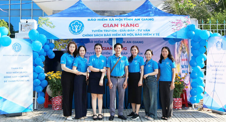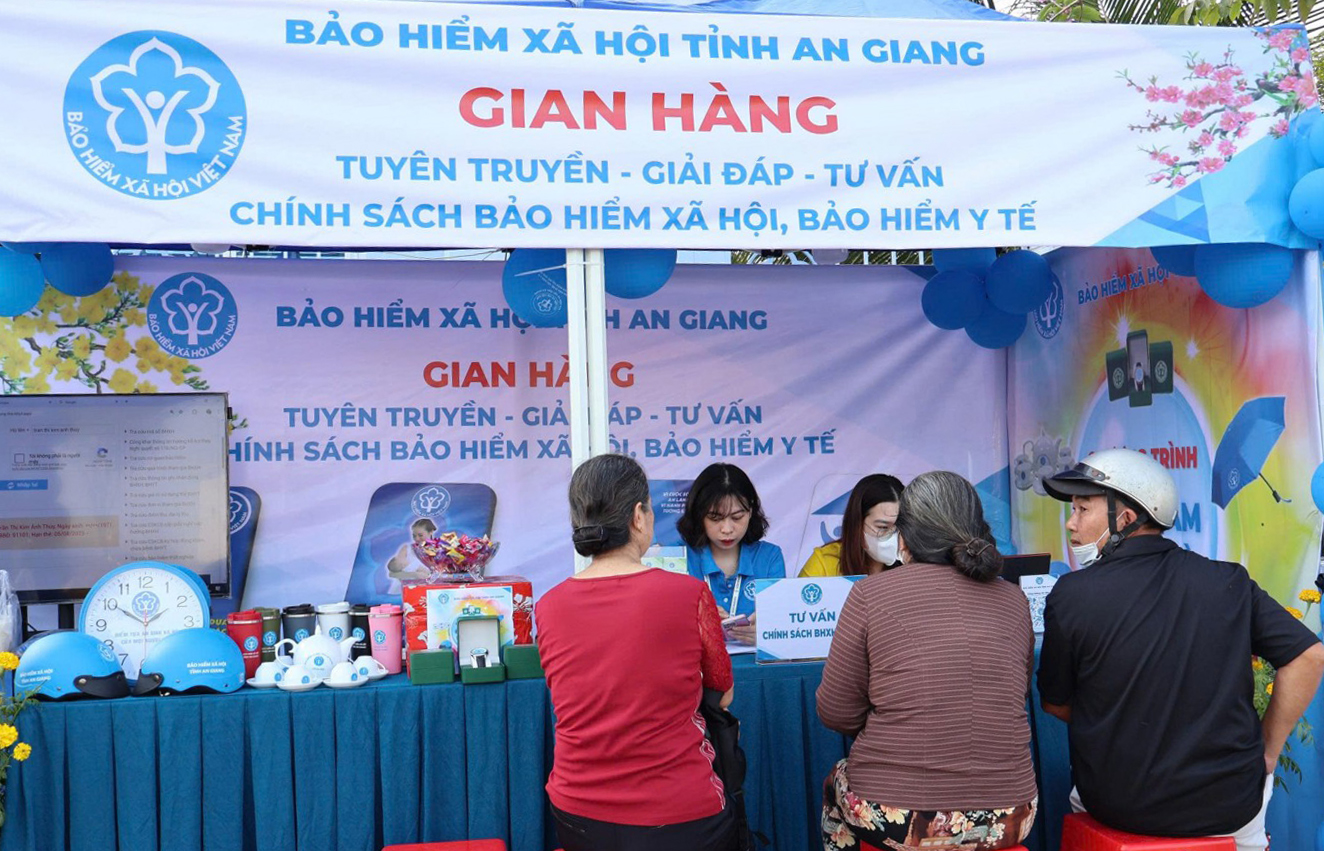 Bảo hiểm xã hội tỉnh An Giang tổ chức gian hàng tuyên truyền, phát triển người tham gia bảo hiểm xã hội, bảo hiểm y tế.