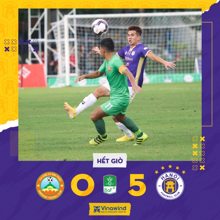 Đánh bại Bình Phước với tỉ số 5-0, Hà Nội FC giành quyền vào bán kết Cúp Quốc gia. Đối thủ của đội bóng Thủ đô là HAGL.
