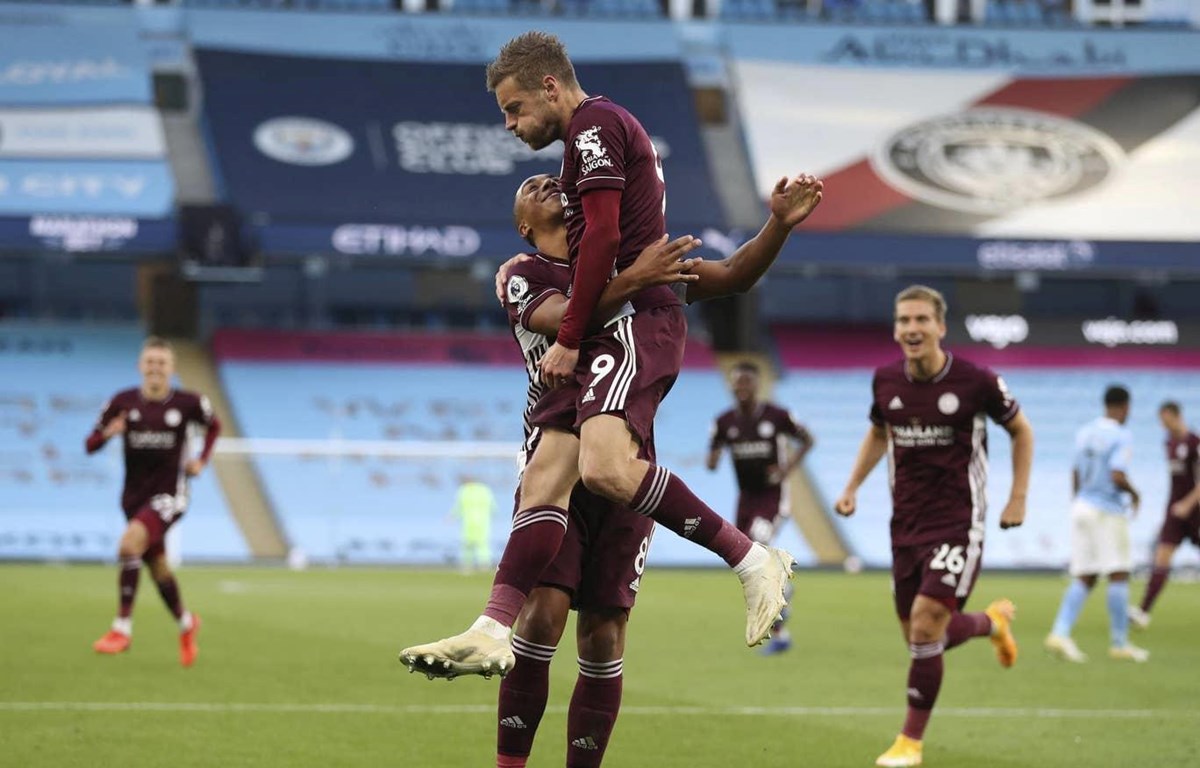 Phút 54, Castagne thực hiện đường căng ngang để Vardy cắt mặt giật gót loại bỏ thủ thành Ederson, đưa đội khách vươn lên dẫn 2-1.