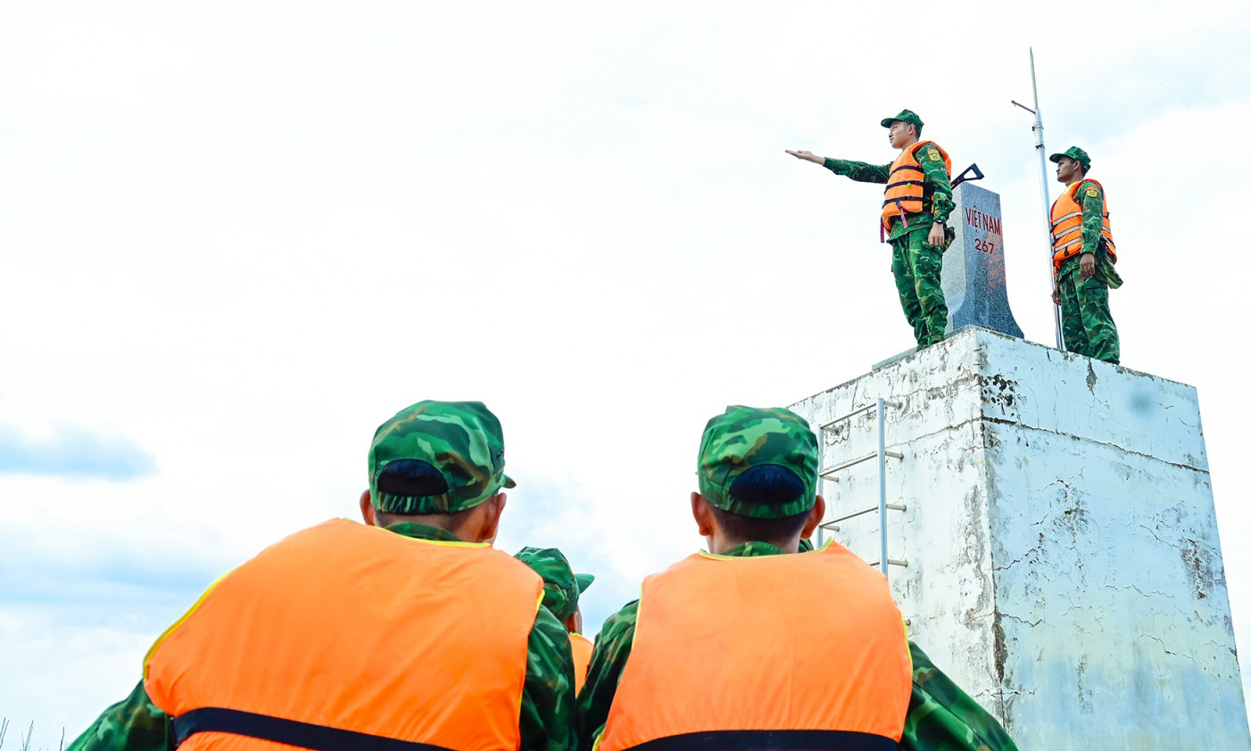 Cán bộ, chiến sĩ Biên phòng thăm cột mốc số 267, phân định biên giới Việt Nam - Campuchia.