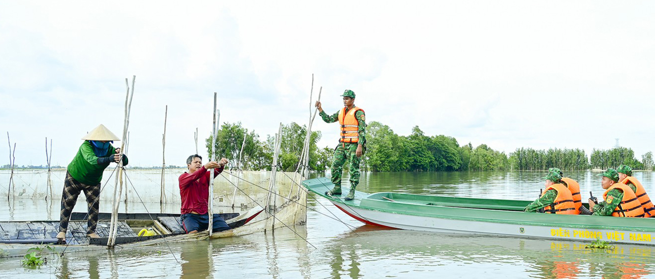 Từ đầu mùa nước nổi đến nay, thời tiết mưa bão thất thường, nước lũ cao hơn so với mọi năm, nhưng những người lính ở Đồn Biên phòng Vĩnh Nguơn không quản ngại khó khăn, ngày đêm tuần tra trên tuyến biên giới.