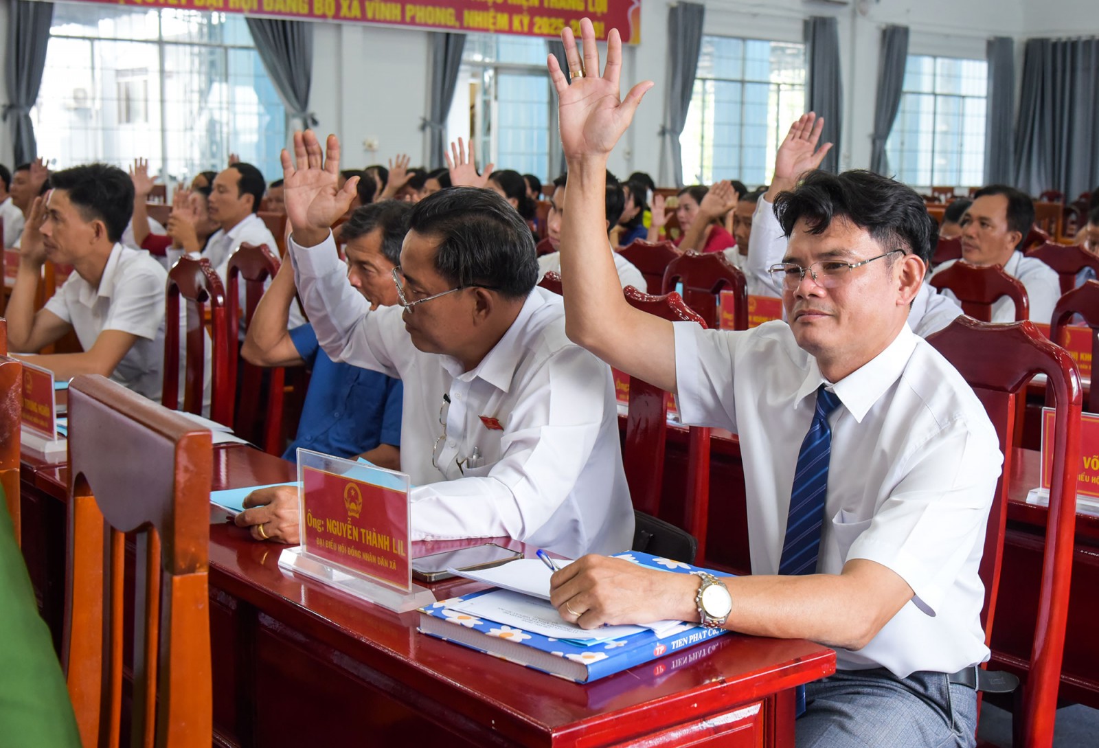 Đại biểu biểu quyết thông qua nghị quyết thành lập Trung tâm Phục vụ hành chính công xã Vĩnh Phong.