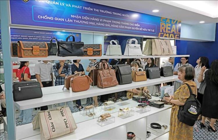 Hàng giả, hàng xâm phạm quyền sở hữu trí tuệ được trưng bày tại Bộ Công Thương. Ảnh: Trần Việt/TTXVN