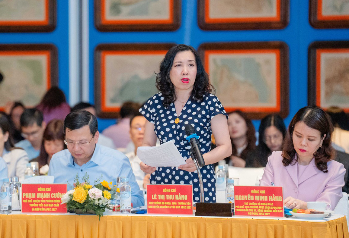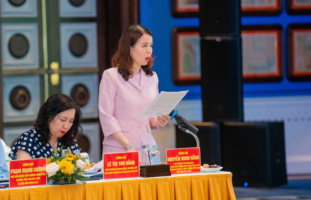 Trưởng Tiểu ban Tuyên truyền và Văn hóa APEC, Thứ trưởng bộ Ngoại giao Lê Thị Thu Hằng phát biểu tại cuộc họp.